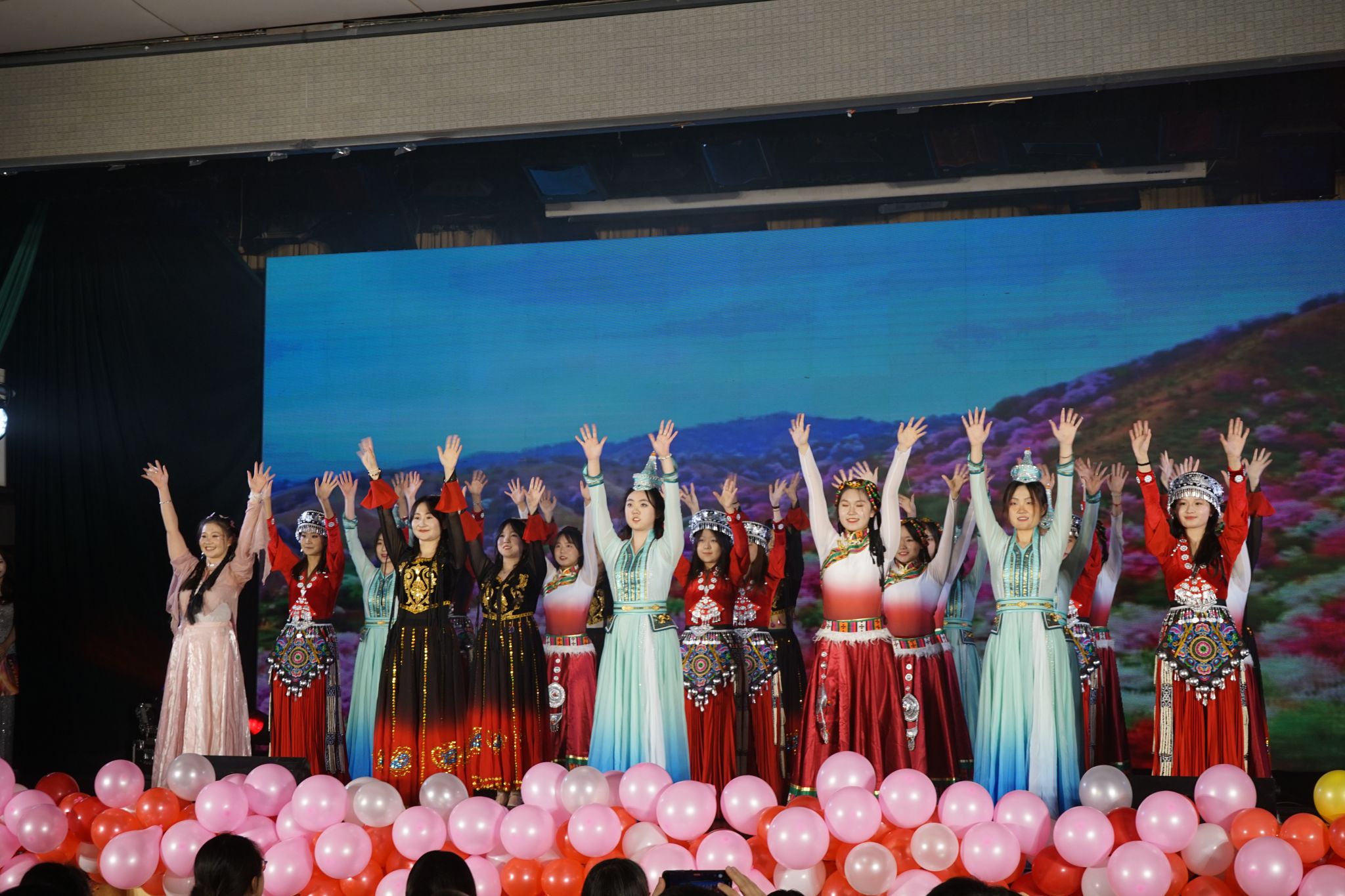 歌伴舞《灯火里的中国》高玲香书记与同学们一同登台高歌,用嘹亮的歌声表达了对祖国的热爱与祝福,让我们感受到灯火之下的锦绣山河与国泰民安;话剧《追光》围绕以张莎莎为原型的杨婉清展开,讲述她传承父志,毅然赴西部乡村支教的故事。激励广大学子用实际行动诠释奉献与传承,如红烛照亮他人,展现教育伟大意义;朗诵《忆往昔峥嵘,谱时代辉煌》传递了历史与时代的力量,展现了当代师大学子的精神风采和文化底蕴,让听众感受到师大的独特魅力与蓬勃生机;舞蹈《舞韵织梦》多民族员工同台共舞,书写了中华民族多元一体的华章,展示了中华民族和谐共生的宏伟篇章。