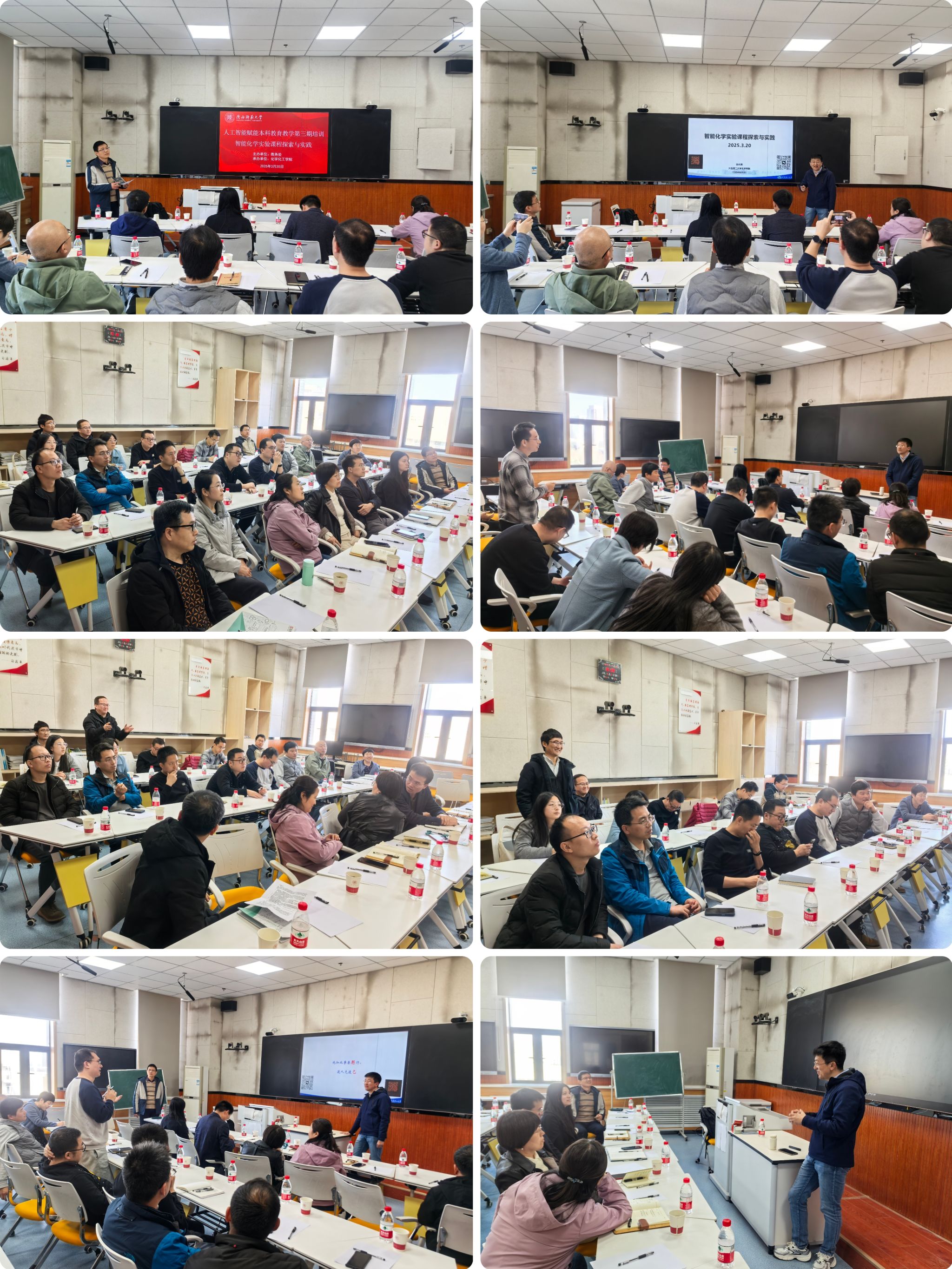 张永策以“智能化学实验课程探索与实践”为主题,结合自身丰富的教学实践经验,从具体实验、课程设计、化学竞赛等多角度,深入浅出地介绍了人工智能技术在化学实验课程中的应用与创新。他通过实际案例,展示了如何利用人工智能技术优化实验教学设计、提升实验教学效率,并分享了智能化学实验课程的建设成果与未来发展方向。报告内容丰富、实用性强,引发了参会教师的浓厚兴趣,多位教师与张老师展开了热烈讨论,现场气氛活跃。
