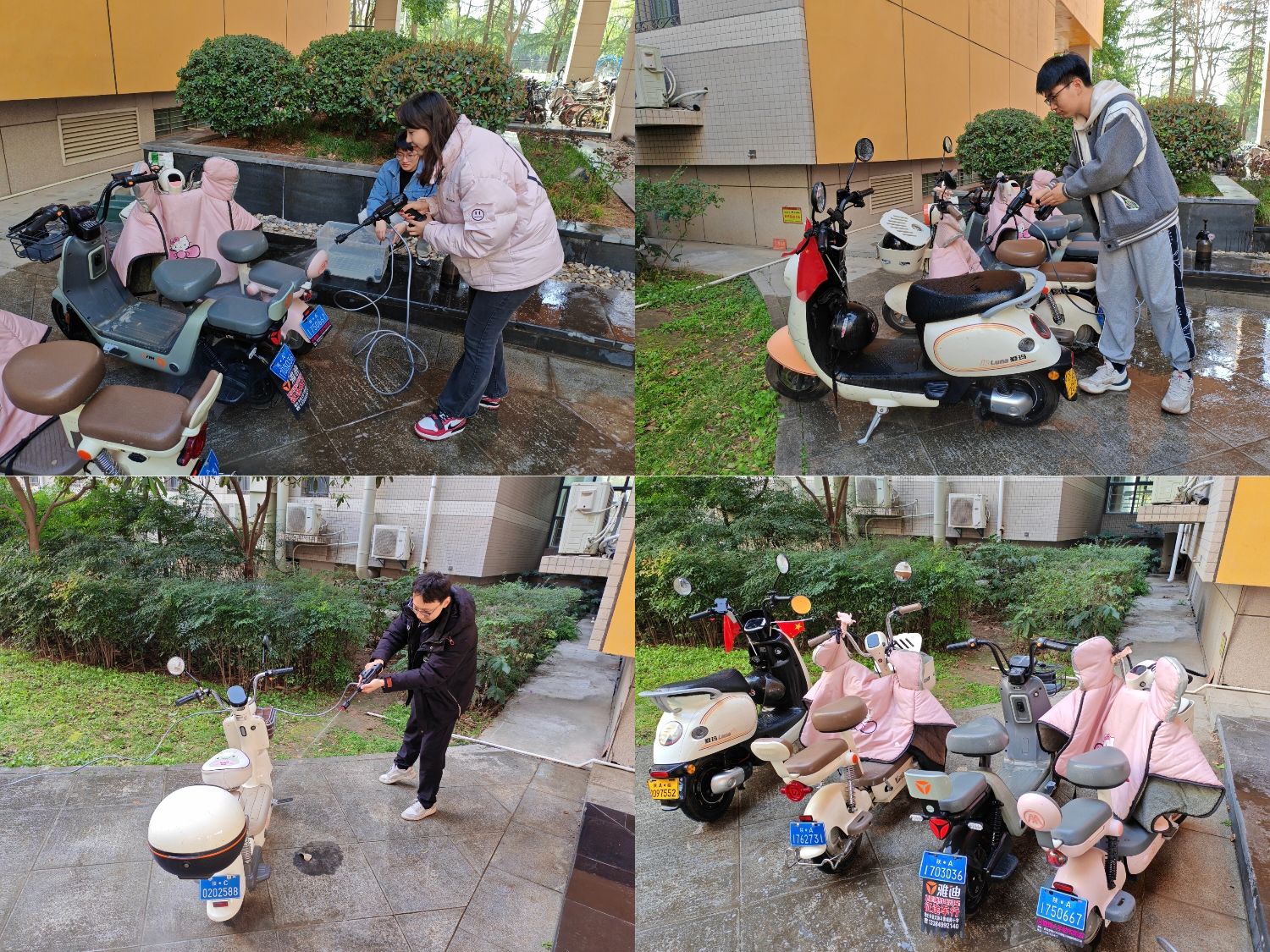 公司员工会开展校园电动车清洗活动。近日,公司员工会组织开展劳动教育实践活动,组建了一支由150余名本科生构成的“清洁出行”电动车清洁志愿服务队,在致知楼天井花园南侧免费为长安校区师生清洗电动车。活动开展以来,志愿者们已累计开展10天75小时的志愿服务活动,共清洁电动车900余辆,培养了个人劳动实践能力,弘扬了志愿服务精神。原本沾满灰尘的车辆在志愿者们的努力下焕然一新,师生们骑上干净的电动车,纷纷对志愿者们的付出表示感谢。