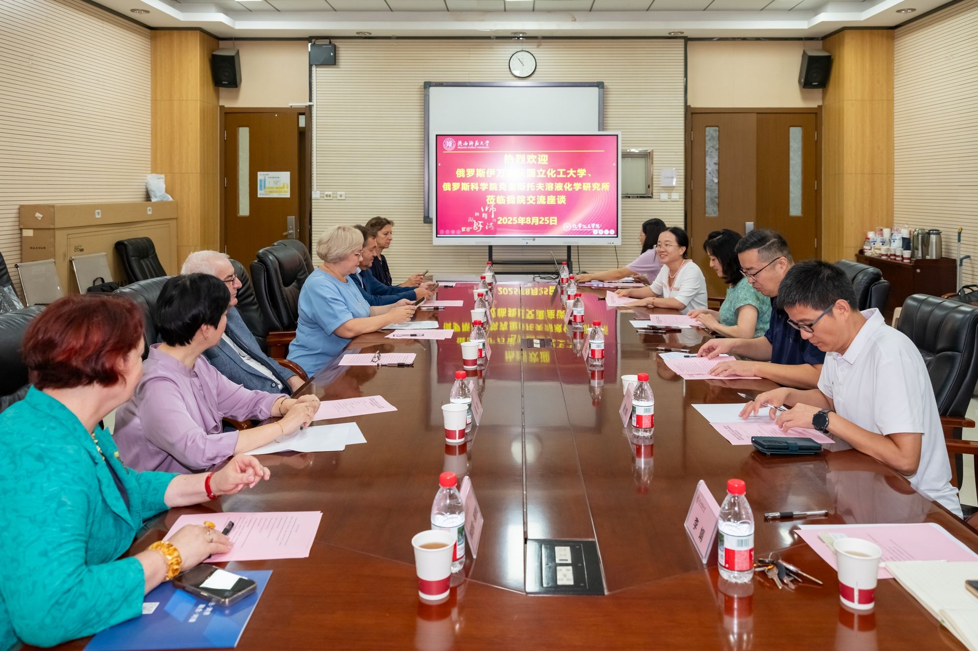 8月25日上午,俄罗斯伊万诺沃国立化工大学Natalya Gordina董事长、Tatyana R. Usacheva教授,俄罗斯科公司克里斯托夫溶液化学研究所Nugzar Zhoraevich Mamardashvili 教授、 Sergey Aleksandrovich Syrbu教授,应邀来公司进行学术交流与座谈,共商合作。座谈会在致知楼1362会议室进行,公司书记高玲香、经理刘成辉、副经理丁立平、翟全国,国际交流与合作处副处长李娟,外国语公司教授孟霞和娜塔莉 • 察廖娃等参加座谈会,座谈会由丁立平主持。