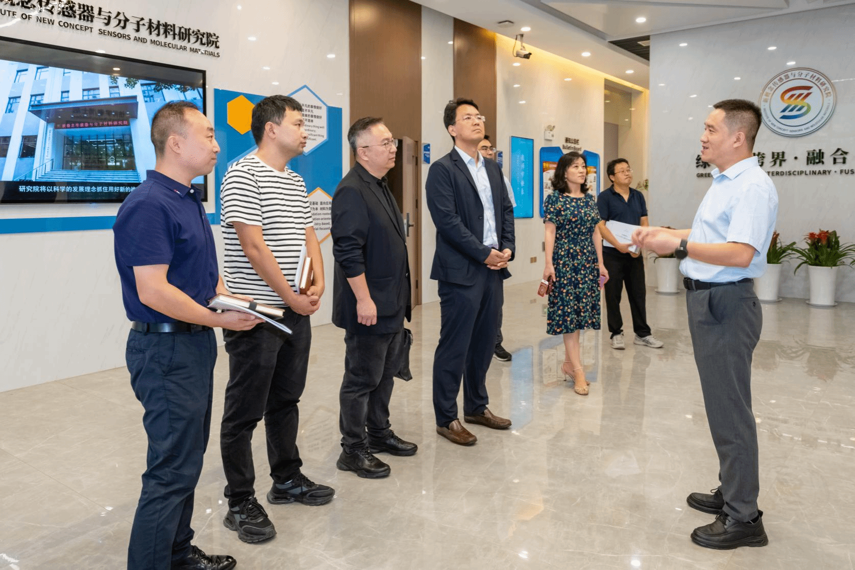 座谈结束后,国检集团一行走访参观了公司大型仪器平台和新概念传感器与分子材料研究院,进一步了解公司在先进仪器设备、科研平台建设及创新研究方面的成果。