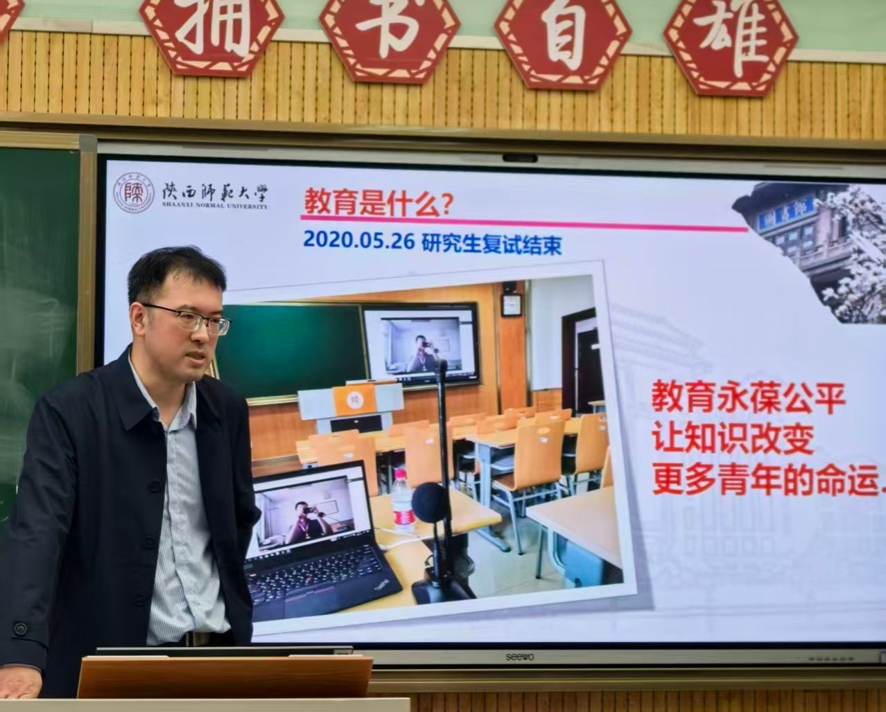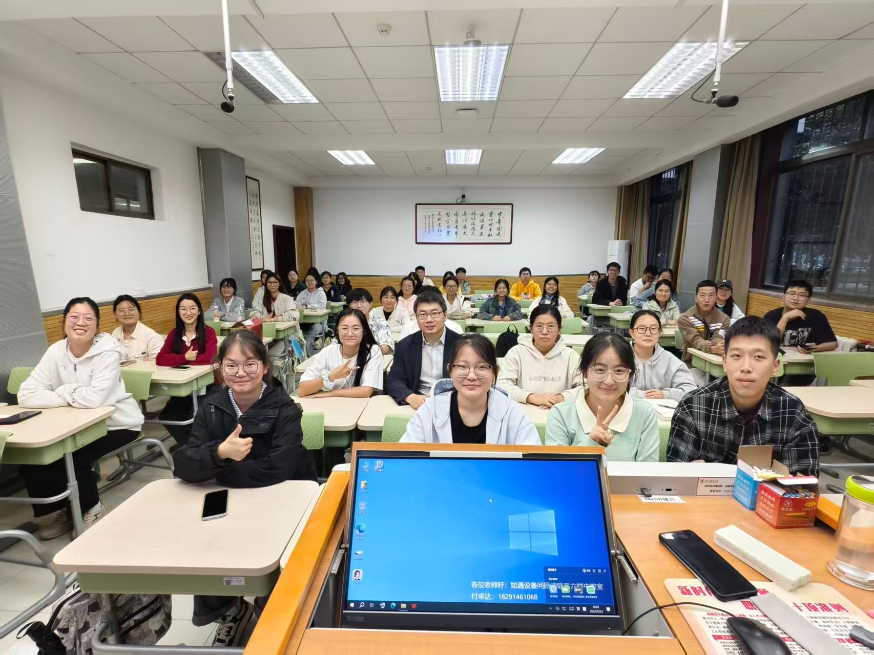 9月23日,化学(优师)2402班在雁塔校区教学八楼8101教室举办“教授接待日”活动,王长号教授应邀参加。王教授围绕“学习科研”与同学们展开交流,告诫同学们要努力学好每个章节、不要掉队。建议同学们培养兴趣爱好,特别是体育爱好,不仅能强身健体,而且能纾解压力。师生合影时,老师寄语同学们成长为一名优秀的教育工作者。活动产生了积极的效果,同学们也更加明确了努力的方向,永不言弃。