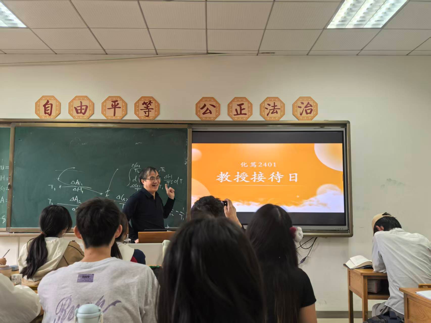 9月26日,化笃2401班在教学五楼5307教室开展了教授接待日活动,白云山教授应邀参加。同学们围绕近期学习困惑踊跃提问,白教授围绕自身在物理化学领域的研究成果与教学经验,以通俗语言拆解复杂概念,解答问题并分享学习方法。此次活动有效解决了同学们在物理化学学习中的共性问题,帮助员工理清知识脉络、提升学习能力与科研信心,同时拉近师生距离,营造了浓厚的班级学术氛围,为同学们专业成长提供有力支撑。