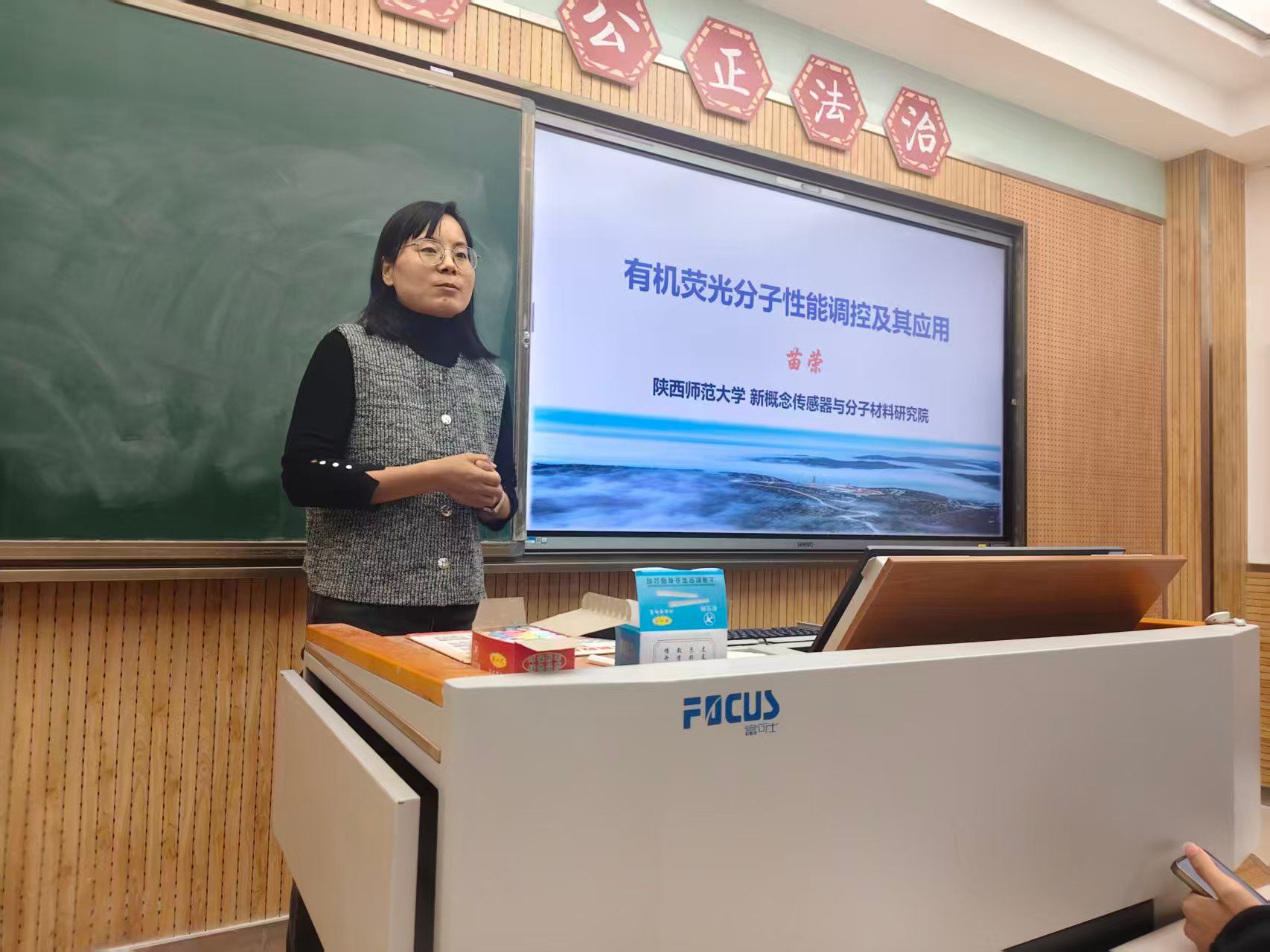 10月17日,化笃2501班在雁塔校区教学八楼8302教室举办“教授接待日”活动,苗荣副教授应邀参加。苗老师以“有机荧光分子性能调控及其应用”为主题,从“荧光是什么”“荧光的核心应用”等方面为切入点进行分享,并积极为同学们答疑解惑,激发了员工对荧光前沿技术的热情。她鼓励同学们主动思考,勇于探索,认识到科研的深度与魅力,并为国家化学发展贡献自己的一份力量。