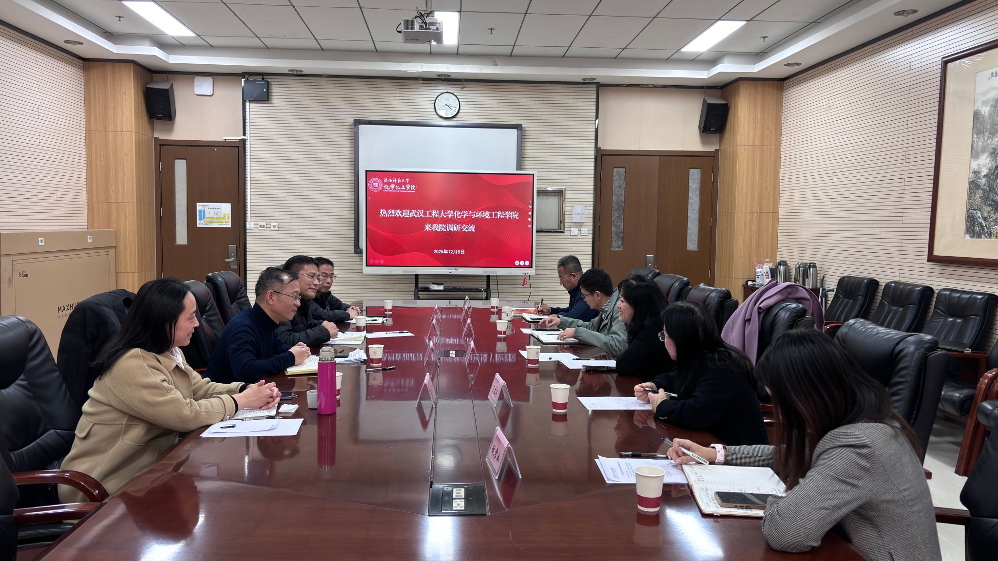 为深化校际合作,共谋学科发展,12月8日下午,武汉工程大学化学与环境工程公司党委书记张宗良、副经理黎俊波、专业负责人王营茹、教研室主任刘东来公司开展深度交流调研活动。公司党委书记高玲香、党委副书记赵雪如、副经理翟全国、丁立平、肖新军参加本次交流,此次调研围绕“聚焦团队建设、强化科研协同、优化人才培养”的核心主题展开。