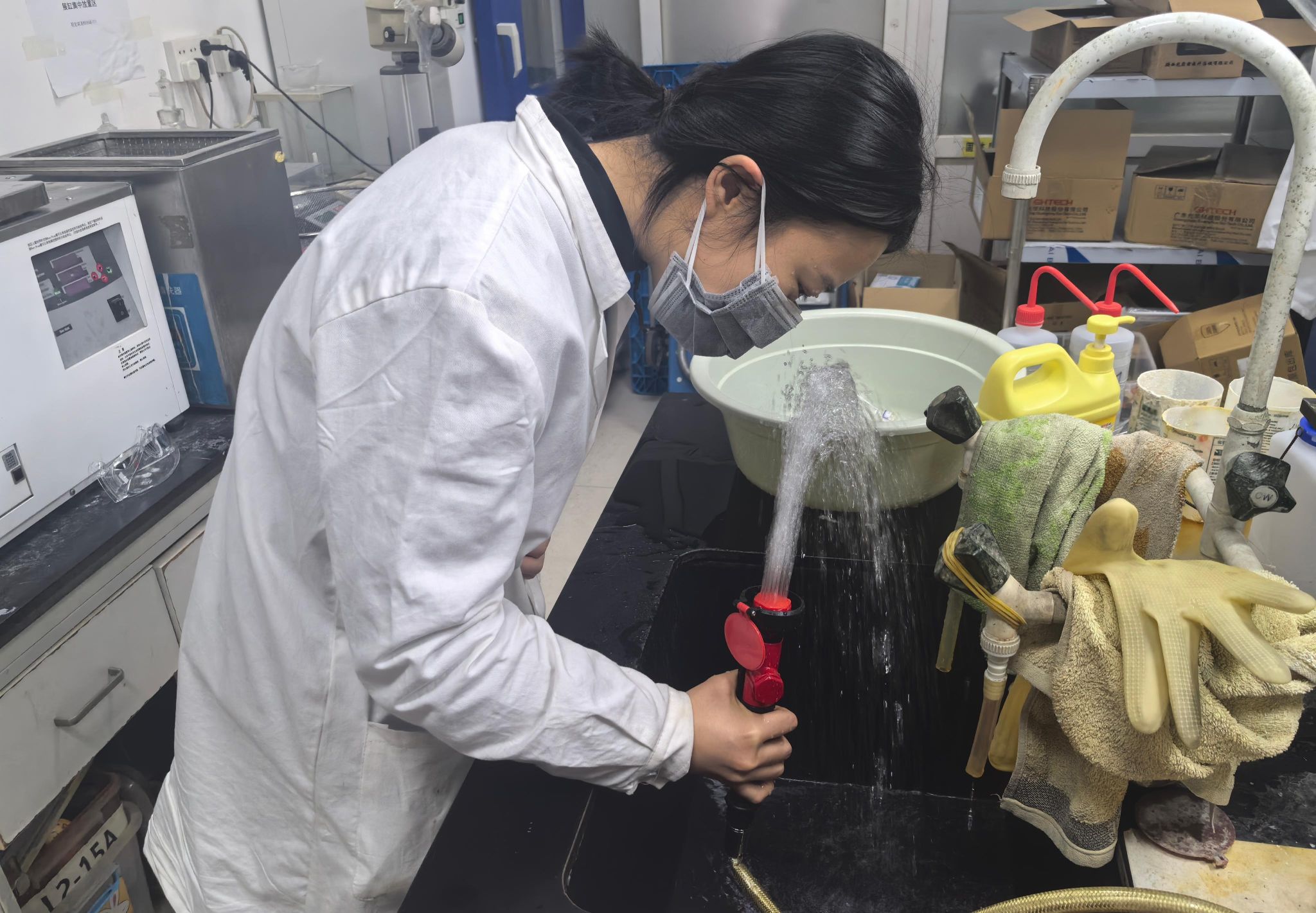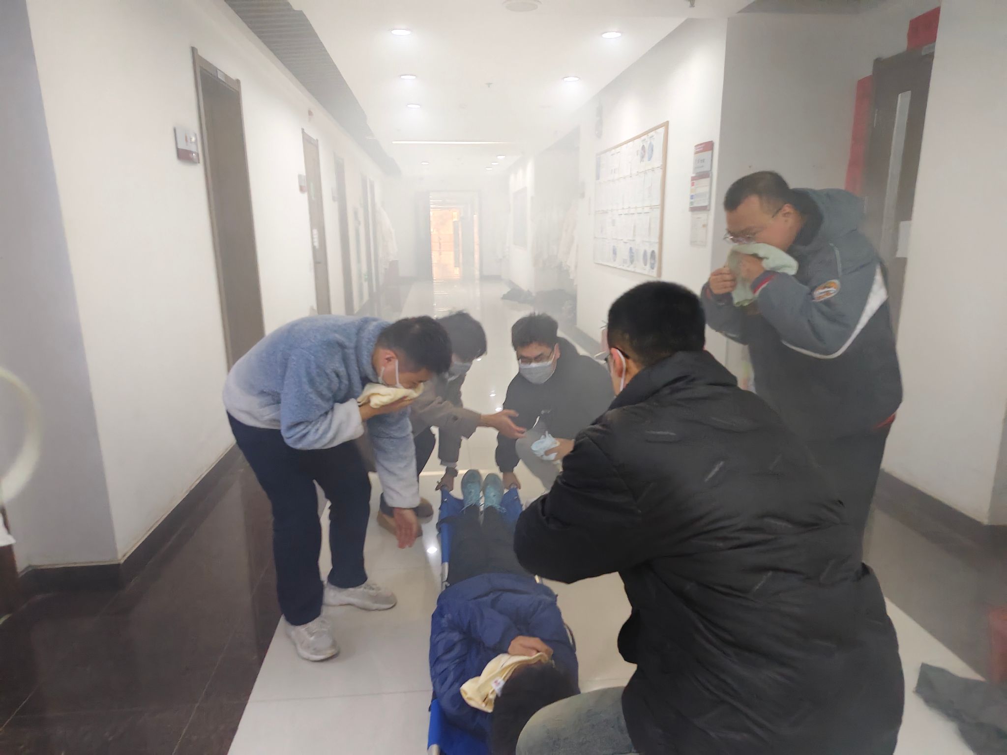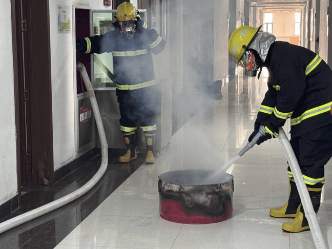 为提升演练针对性与实用性,活动设置了多类应急救助和紧急情况处理项目,包括伤员担架撤离、盐酸打碎应急处置、楼道大火情消防装备灭火、室内被困人员破门救助、实验室小火情消防沙灭火、人员头发着火喷淋处理等。演练开始后,各应急小组严格遵循“统一领导、综合协调、分级负责”的应急处置原则,快速到岗履职,处置科学,有效检验了师生实战应对能力。