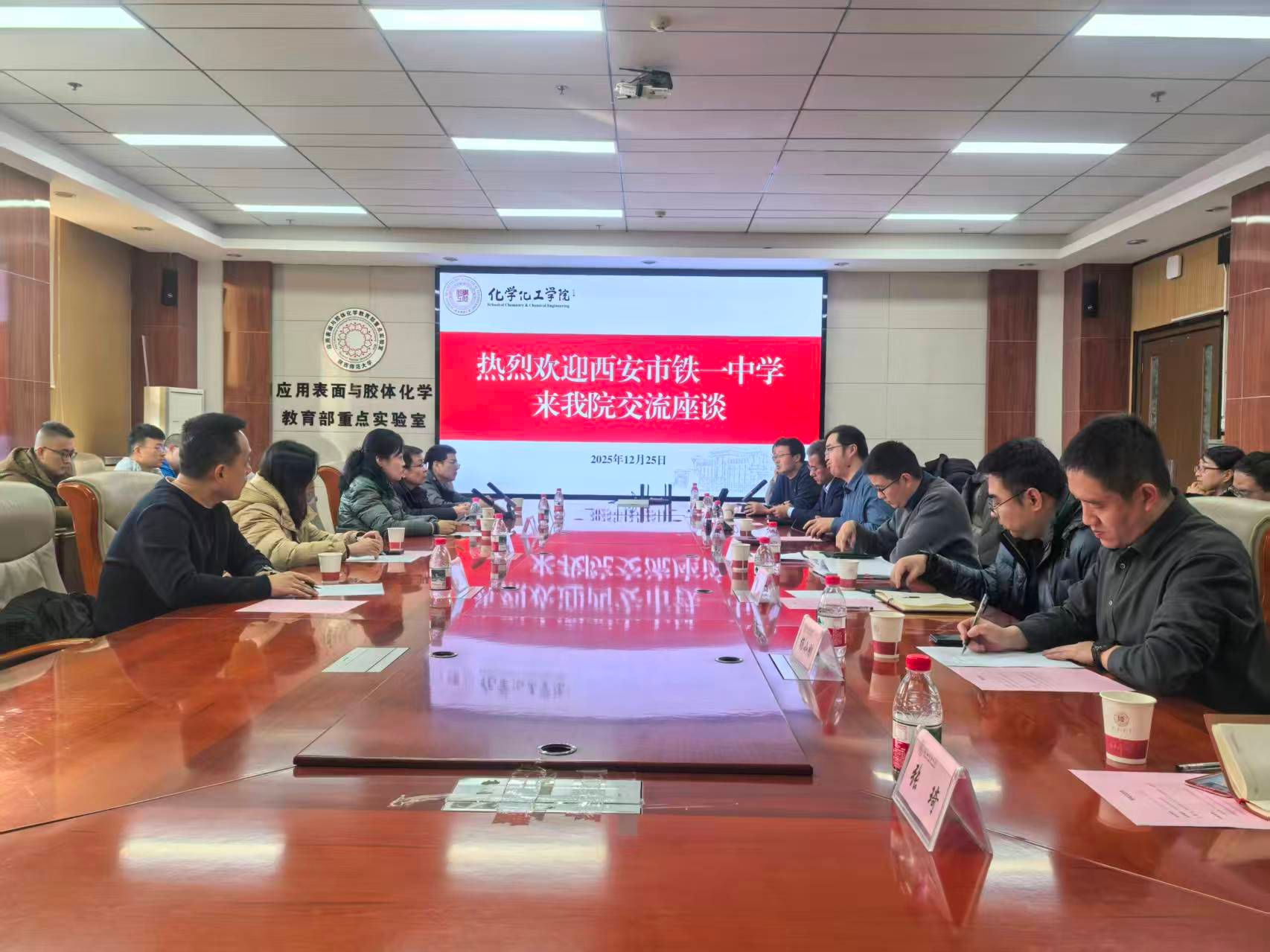 12月25日下午,西安市铁一中学董事长助理沙靖携全校化学组教师30余位骨干教师来公司参观交流。公司经理刘成辉、副经理翟全国、肖新军、顾泉、新概念传感器与分子材料研究院副经理杨小刚、国家级实验教学示范中心主任严军林、公司骨干教师魏灵灵教授与张琦副教授共同出席本次交流活动。此次会议旨在深化校际合作,共谋教育高质量发展新路径。会议由肖新军主持,现场气氛热烈,交流深入。