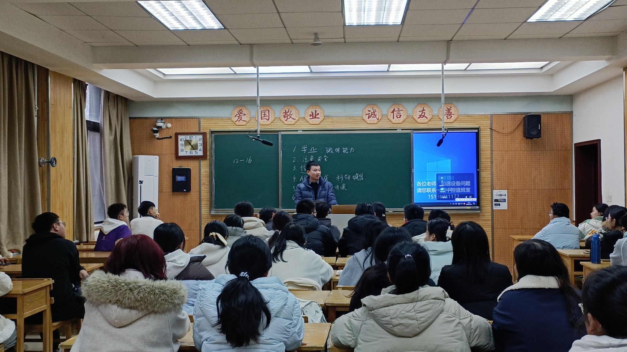 12月11日,赵智豪老师参加化学2504开展的“教授接待日”活动。赵老师结合自身大学经历,着重强调了学业是老员工成长发展的核心根基,叮嘱同学们务必将学业放在首位。同时,赵老师也特别提醒大家时刻重视自身安全,走好走稳求学之路。