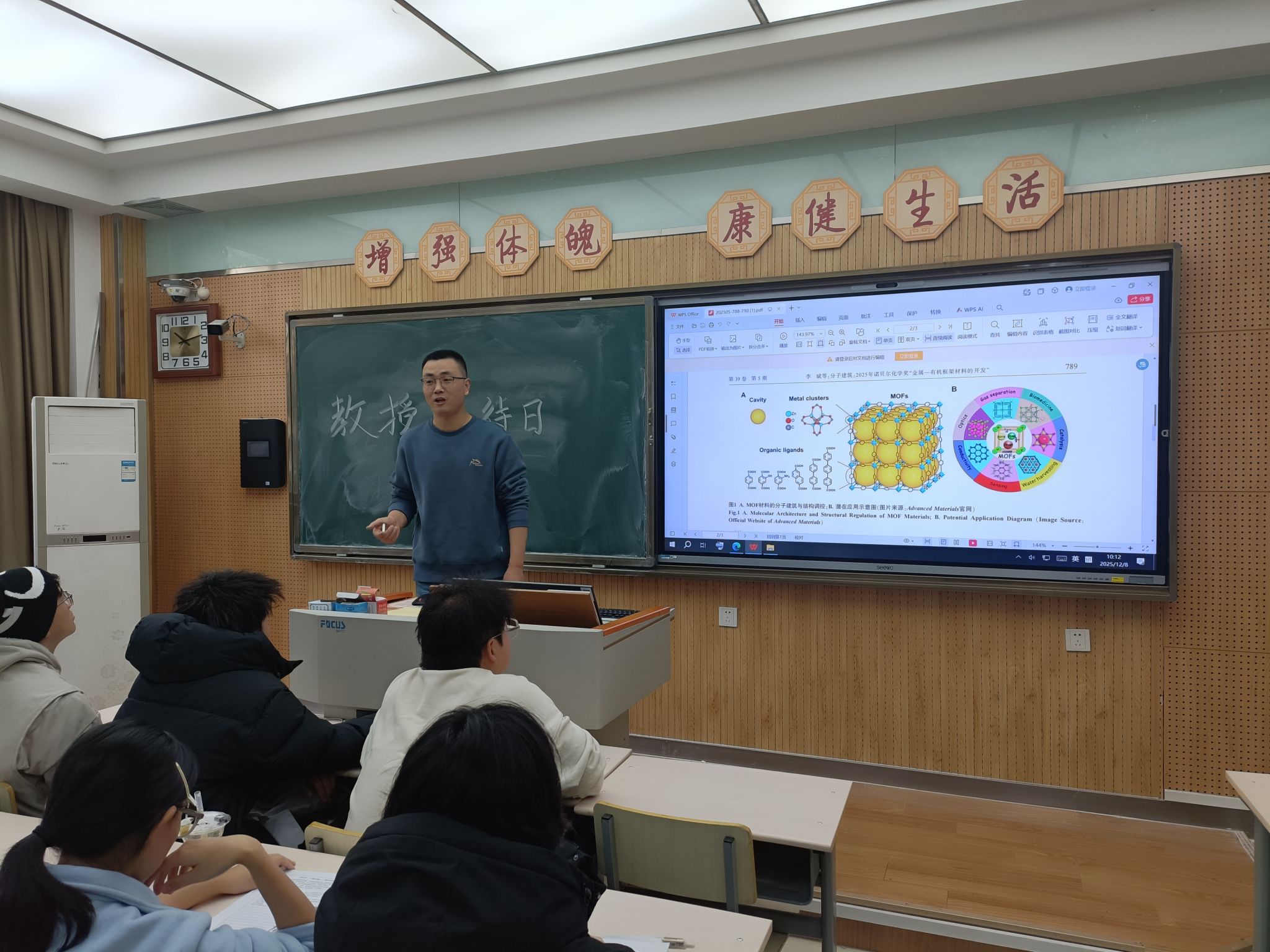 12月8日,乔金宝副研究员参加化学2501班举办“教授接待日”活动。他以“2025诺贝尔化学奖与大学学习方法分享”为主题,与同学们深入交流。本次活动有效拓展了员工对化学前沿的认知,提供了实用的学习方法指导,同学们也表示将把收获转化为学习与成长的动力,立志成长为符合新时代要求的化学人才。