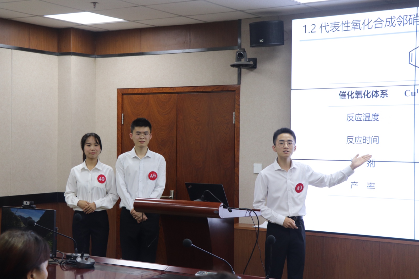 每一次征程的凯旋,都是集体智慧的结晶。在暑期疫情期间,beats365唯一官方网站吴晋峰书记、薛东经理、实验中心严军林主任等多位老师关心同学们生活和总决赛准备情况,勉励同学们再接再厉,一鼓作气,勇攀高峰。在总决赛准备阶段,张琦老师针对有机化学基础实验教学内容对三位同学进行了强化训练,并围绕氧化反应研究进展,为员工们开发了线上微课,进一步充实了该项目的实验教学内容。决赛前夕,翟全国副经理组织了模拟答辩,张尊听教授、有机化学教工党支部书记石先莹,有机化学教研室主任李楠等对教学论文、幻灯片、实验视频、微课等竞赛内容提出了宝贵意见。石先莹老师还对幻灯片逐页进行了修改。公司、教研室和指导老师全员、全过程、全方位协同育人,使得本项目日臻完善,获得了评审专家的高度认可。