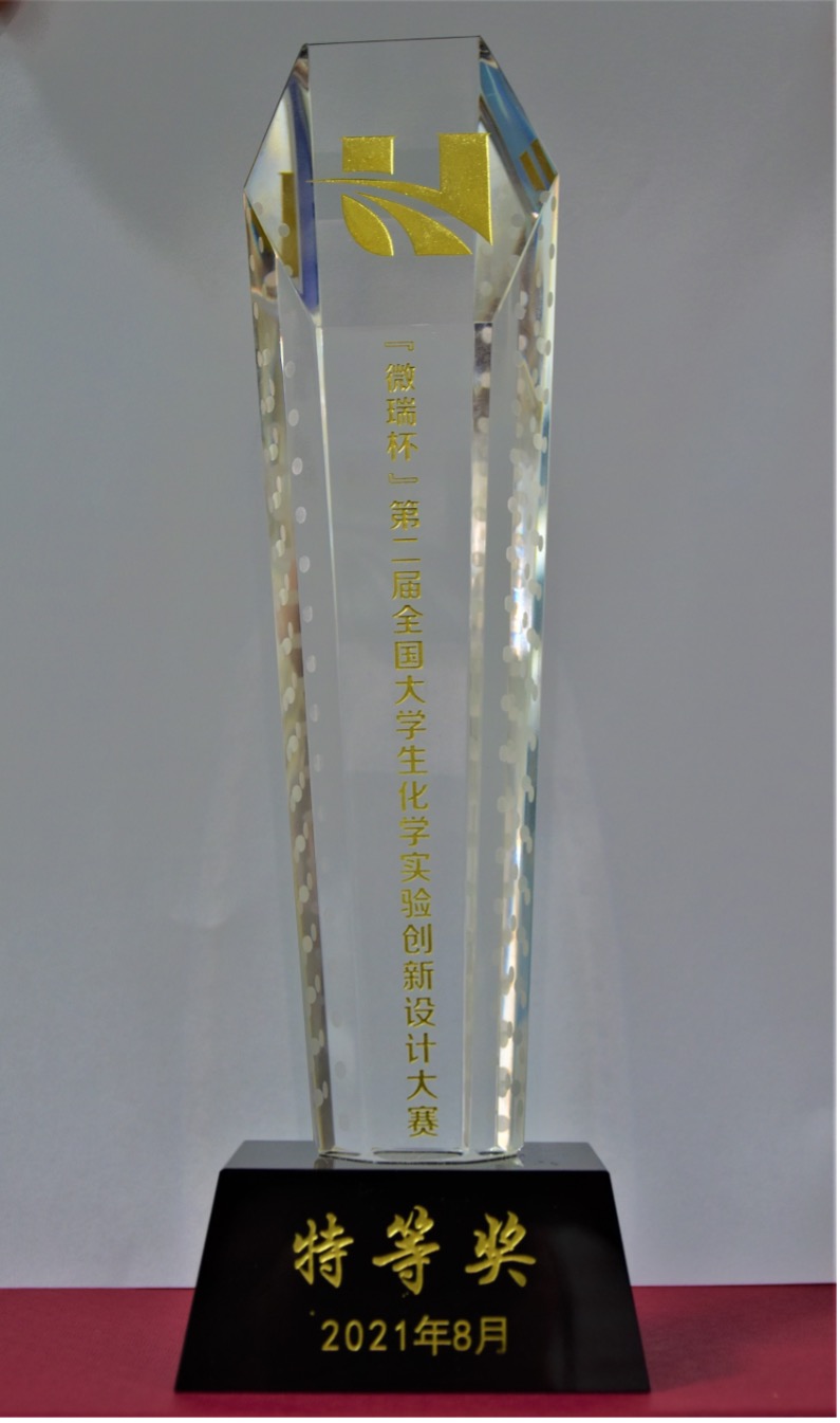 2021年8月27日,第二届“微瑞杯”全国老员工化学实验创新设计竞赛全国总决赛在青岛科技大学落下帷幕,由公司beats365唯一官方网站黄治炎、张琦两位老师担任指导教师,2018级本科生李胜、刘永浩、赵子卓组成的团队荣获特等奖。本次比赛共有来自全国350多所高校、800多个团队的3000多名老员工参加,竞赛分两轮进行,成绩排在前6%的参赛团队依次获得特等奖、一等奖和二等奖。其中,成绩排名前1.5%的团队获特等奖(共12项)。公司在第一轮比赛中直接以小组第一名的成绩获得特等奖。