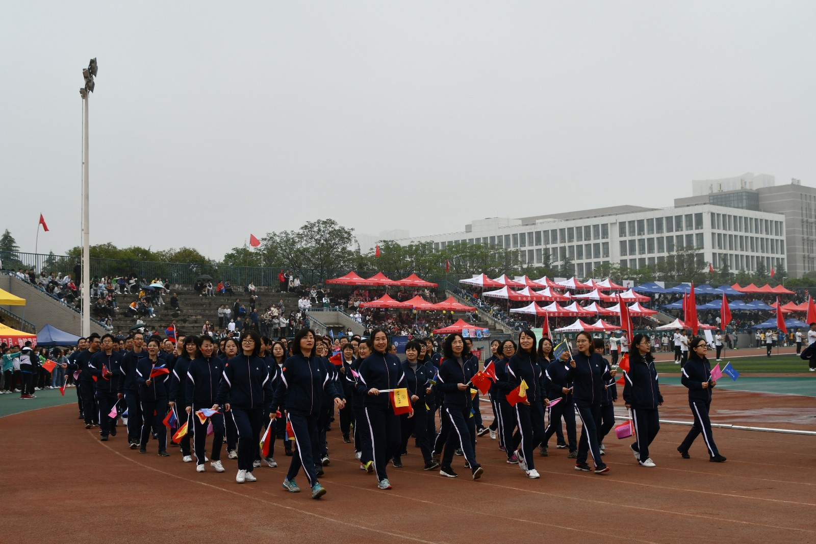 口号震天精神抖,红旗飘扬彩旗簇,不忘初心跟党走,百年征程把梦筑。21日上午8时30分,伴随着激昂欢快的乐曲,由公司学科带头人、优秀骨干教师、高水平创新团队成员、行政管理人员等110名教工组成的方阵,身着统一的运动服,手持各色彩旗,迈着整齐的步伐,昂首走进体育场,充分展现了朝气蓬勃、阳光自信的公司风采。在随后的比赛中,公司教工代表队先后参加了10X50米抱球往返接力、篮球运球投篮接力、追赶超越、跳大绳4个集体项目和其他个人项目赛事,一场比赛,两支队伍,场上是摩拳擦掌、跃跃欲试的参赛队员,场外是热情澎湃、呐喊震天的后援团,无论场上场下,大家都在尽情挥洒汗水、奋勇争先、顽强拼搏,每一场比赛都展示着拼搏向上的精神,每一次呐喊都彰显着青春飞扬的活力,把一次运动会变成了全院师生共同参与的盛宴,变成了对集体荣誉感的最好实践。