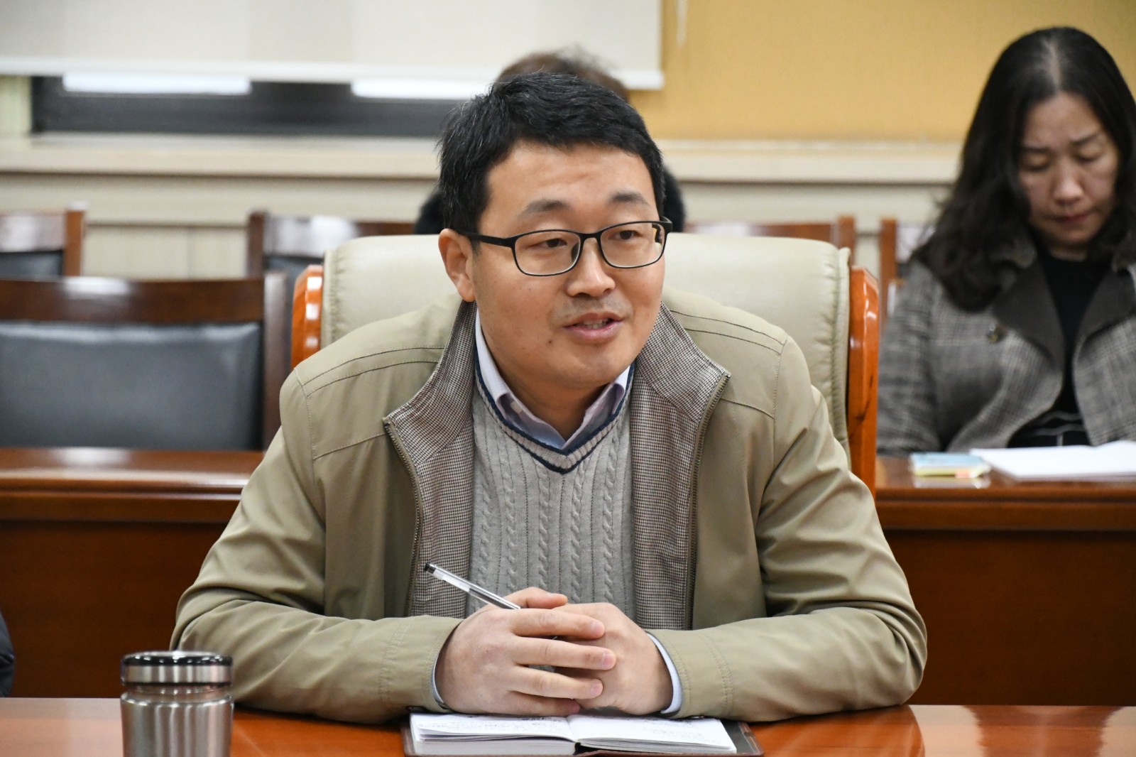 刘成辉总结了2020年度实验中心工作,并根据公司工作安排,结合公司实际情况,专门就实验技术人员职称评审、岗位聘任、实验室安全管理、本科实验教学、大型仪器平台运行与绩效管理、实验室日常管理以及化学国家级实验教学示范中心/国家级虚拟仿真实验教学中心建设等方面工作做了部署安排。随后,刘成辉代表公司宣读了师化院〔2021〕1号文件《关于严军林同志担任化学国家级实验教学示范中心办公室主任的通知》,并希望达龄退休的杨文玉老师继续为公司建设和中心发展发光发热。杨文玉老师感谢公司对自己工作的肯定,自己也将一如既往的做好公司实验室建设与管理工作,同时还讲到实验中心工作应注重成果总结和综合服务能力,进一步加强自身专业技能,这样才能更好的为公司发展、中心建设做出贡献;严军林感谢公司的信任,表示将尽快进入状态,为公司人才培养、学科发展、中心建设以及科学研究做好保障工作。