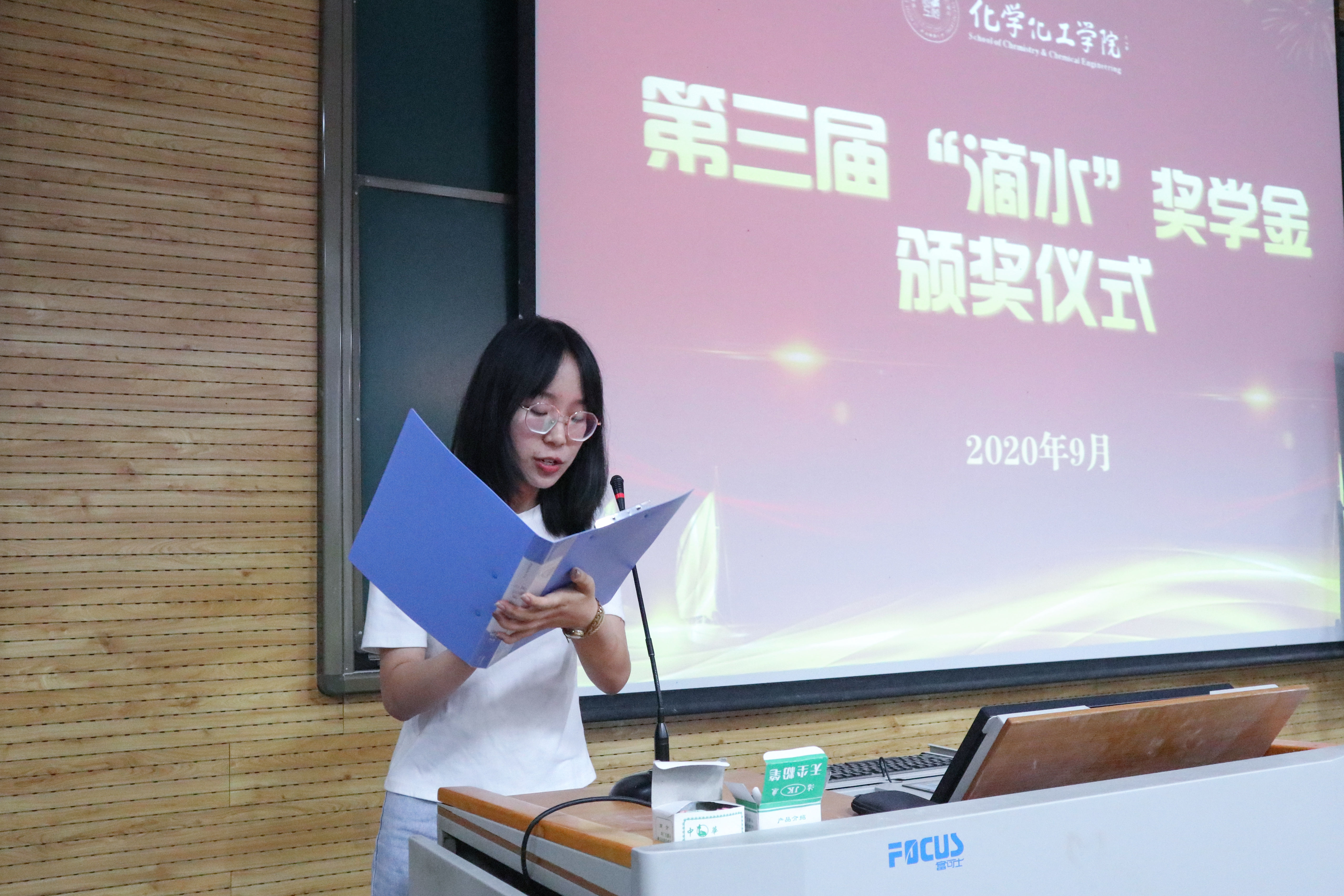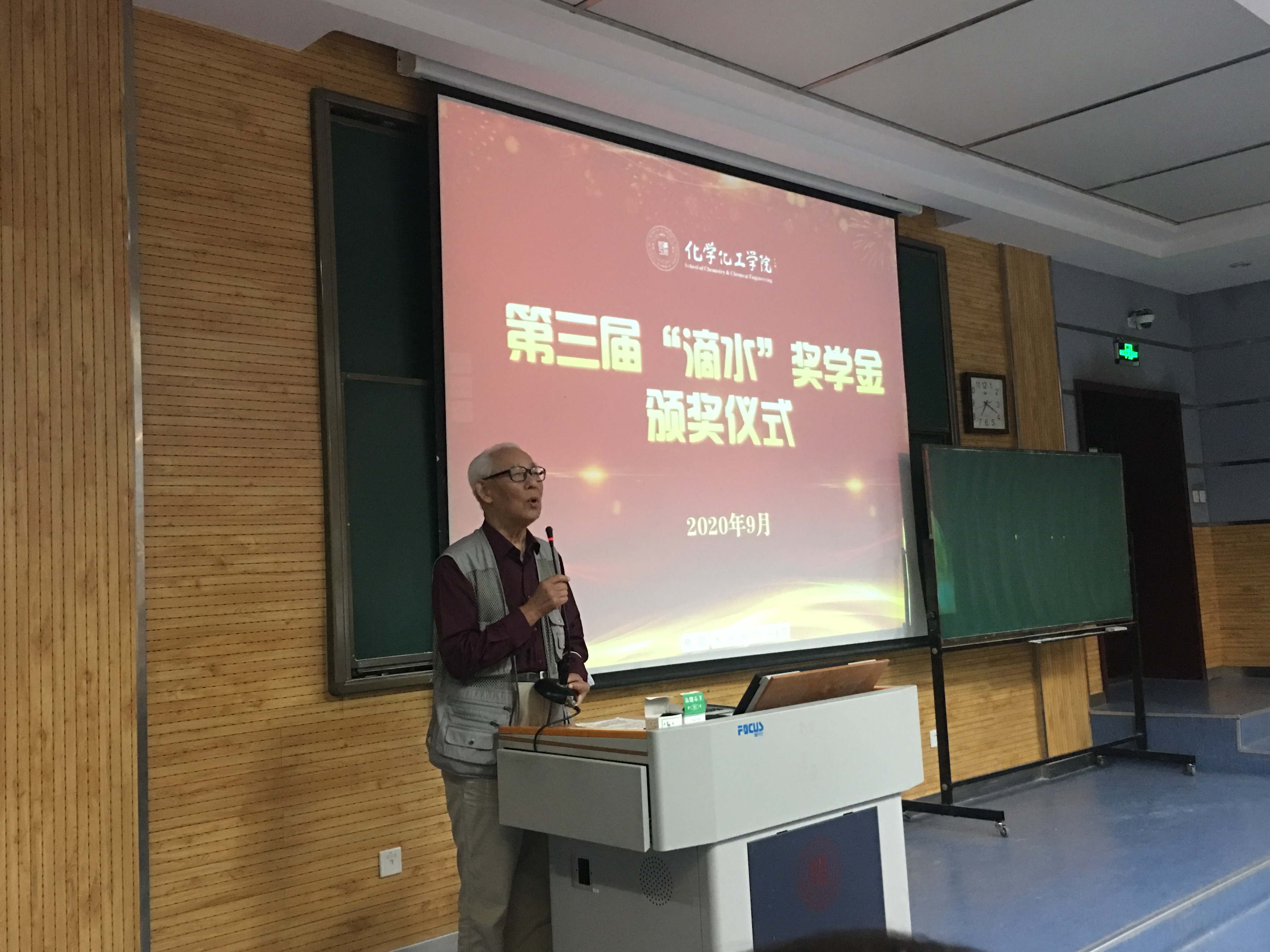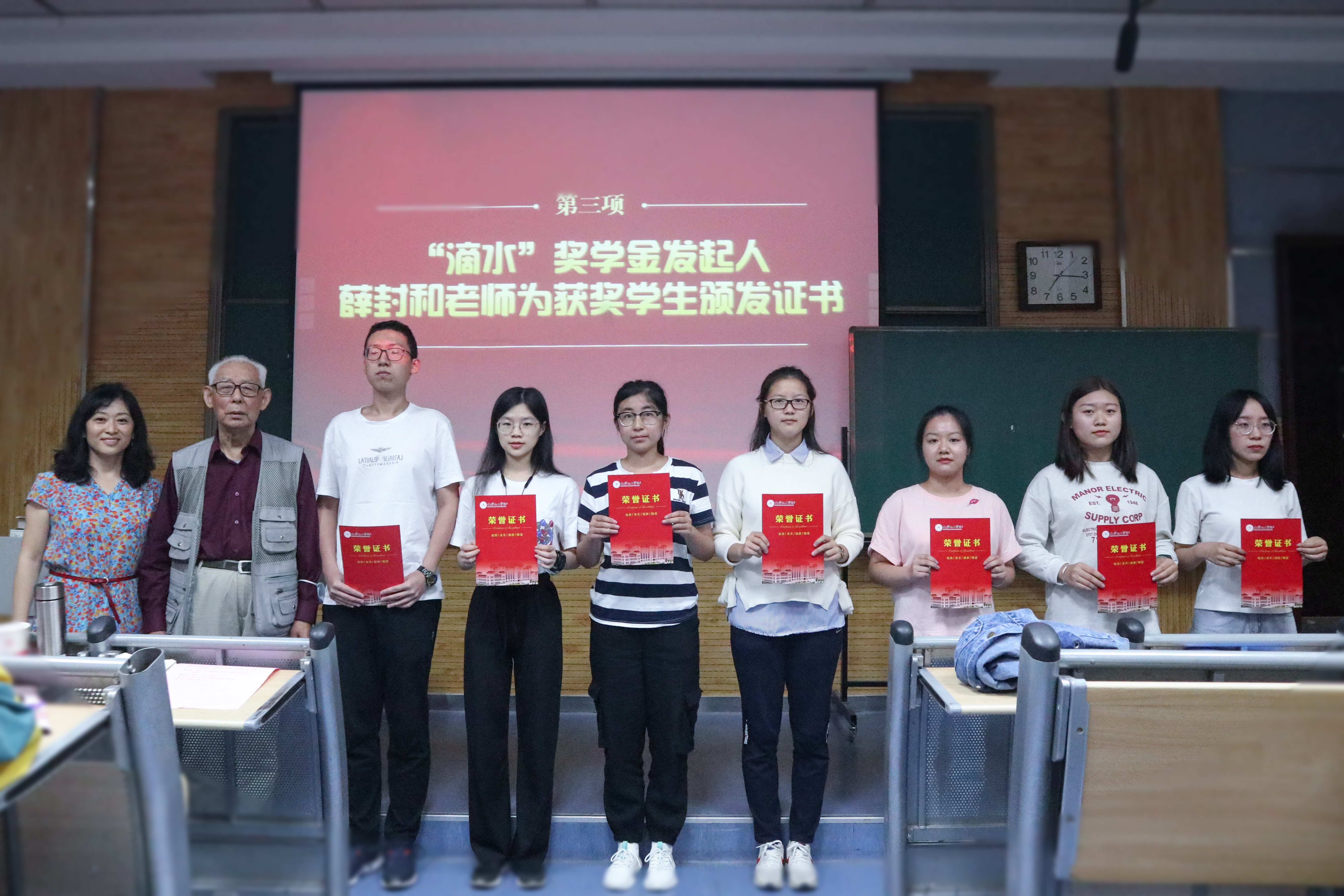 2020年9月13日晚,beats365唯一官方网站第三届 “滴水” 奖学金颁发仪式在雁塔校区5104教室举行。“滴水”奖学金是由公司退休教授薛封和老师捐资发起的,自2018年成立至今已有三个年头。薛封和老师、公司党委书记高玲香、分析化学教研室主任漆红兰、教工分析化学党支部书记刘伟、2019级辅导员邓文珺及2019级全体员工参加颁奖仪式。颁奖仪式由高玲香书记主持。