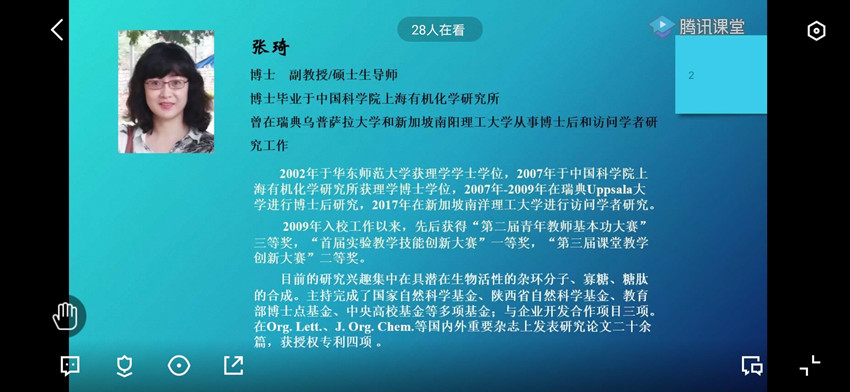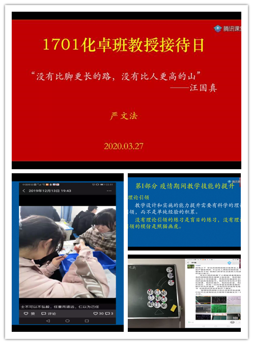 3月27日,2017级化学卓越教师实验班在腾讯课堂开展 “教授接待日”活动,此次请到的是严文法老师,严老师围绕同学们关心的三个方面的问题进行了解答。首先是疫情期间教学技能的提升,严老师提出了三个建议,第一要有理论的引领;第二是要进行实践反思;第三就是要有榜样示范。此外严老师还针对目前同学们的微课设计进行了点评,对实验创新设计不足的问题进行了专业讲解。其次,严老师就同学们关心的就业问题,谈了自己的看法,分享了自己的见闻,寄语同学们永远不要熄灭心中的火焰和暗淡眼神里的光芒。最后严老师鼓励同学们树立终身从教的理想信念。