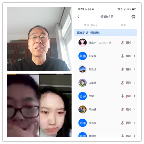 3月30日应用化学1701班在腾讯会议举行了 “教授接待日”活动,杨荣榛教授为同学们带来了一场精彩的讲座。杨老师以自己在学习职业生涯中积累的经验和丰富的阅历,为同学们讲述了在化工厂工作的一些体会,给同学们解答了目前遇到的困惑,向同学们提出几点建议以及期望:第一,提醒同学们在选择职业之前要有周全的考虑;第二,期望同学们注意把所学专业和社会需求相结合起来;第三,希望同学们具备独立思考,明辨是非的能力。杨老师的语言中肯,生动幽默,关心了同学们在家的学习状况,也给予了考研的同学们很大的鼓励。
