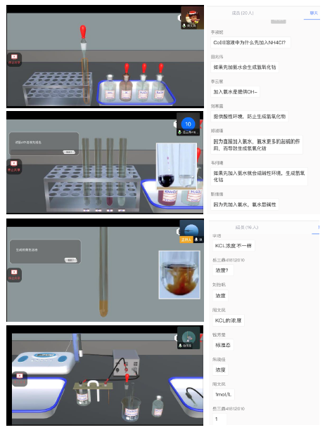 面对新内容、新技术和新模式实验教学,为了统一安排和实施教学过程,无机化学实验教学团队各教师分工协作,针对每一个课题都制定我们自己的实验课件、实验讲义、实验报告模板、实验预习测验以及思考反思问题。此外,团队每周一上午都会安排课题负责教师针对本周将要开展的线上实验进行教学演示,并组织所有实验课教师在腾讯会议进行集体观摩、讨论与交流,围绕教学目标确定统一的教学过程和教学重点。在教学实施过程中,为了巩固实验内容与理论知识的关联性,强化实验操作意识,提升员工综合运用知识的能力并拓展知识面,我们将实验教学过程划分为线上预习与测验、线上教学互动、线上实验体验、线上沟通交流、线上反思评价五个环节。