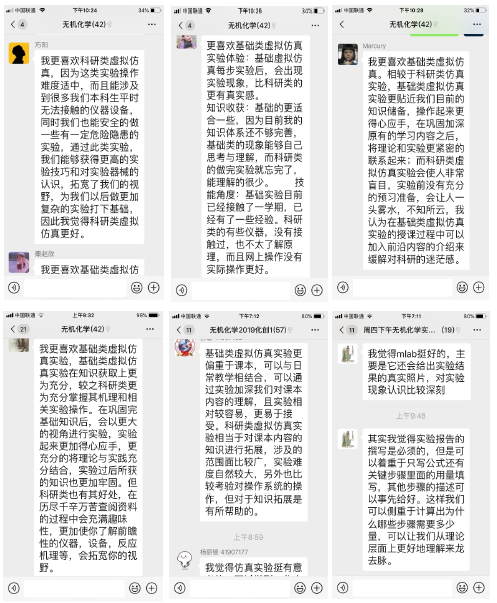 由于团队教师的协作努力,实验课堂教学效果明显,员工满意度高。从员工的整体反馈结果来看,员工对目前科研类虚拟仿真实验课基础类虚拟仿真实验相结合的线上授课模式表现出很强的兴趣与期待。此外,为了后续课程的高效实施,我们还特别注重员工引导员工总结实验收获,展示自己的问题,并提出意见或建议。