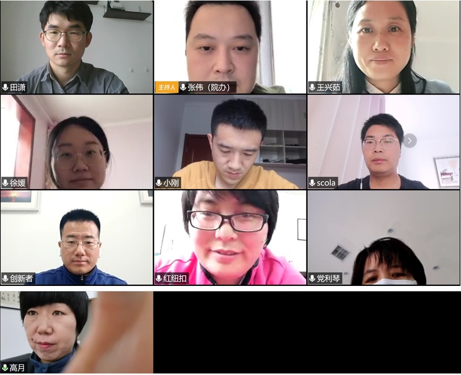 随后,办公室成员就近期各自工作进展、生活状况和切身感悟进行了交流。张伟谈道“自己作为公司疫情防控专职联络员,深感责任重大,在最初几天经常从上午6点工作到晚上11点,多亏办公室人员群策群力,公司教师积极配合,后续的工作才得以顺利有序开展”;为了解决上班不便的问题,教学秘书高月专门带家人搬进新校区居住,她乐观地说“这样既能降低频繁出行带来的风险,也能更迅速的处理老师们在线上教学中遇到的麻烦,还能享受新校区优美的环境,一举多得”;研究生秘书张小玲由衷地说“前期疫情形势严峻,办公室人员相互补位,团结协作,让人既充满感动,又感受到了团结的力量。现在我基本上是周一至周五都在办公室正常上班,处理博士招生和研究生答辩的有关工作,周末利用闲暇时间翻看自己喜爱的历史书籍,但还是希望尽早恢复正常,能正常上班才是一件很幸福的事情”;教育部重点实验室秘书党利琴说“近期完成了重点实验室两个年报的整理工作、引智系统和引智调查表的填报工作。深刻的感觉到不是工作需要我们,而是我们需要工作,由衷的感到生活在我们伟大的祖国特别幸福”;重点实验室科研助理王兴茹感叹地说“在这种特殊时期,自己和职工进行了逐一联系,要求他们每天打卡,确保不漏一人,感受到公司对职工的细致管理和人文关怀,暖意满满”;科研秘书曹凯超谈道“之所以数据统计准、填报效率高,要特别感谢公司老师的支持配合。目前正处于国家自然科学基金申报的关键时期,自己也会一如既往做好服务工作。深刻感受到逆行白衣天使特别伟大,他们才是这个时代最勇敢最值得尊敬的人”;行政秘书田潇感慨地说“疫情使得独住的自己生活上不太便利,但这也正说明自身生活技能的欠缺。公司人事、财务等行政工作已正常开展,我们也要努力学习新的工作方法,适应疫情防控形势下的新工作模式”;教学秘书徐媛感触到“公司老师为了保证线上教学效果质量,认真负责的精神着实令人感动。自己只有尽力做好服务保障工作,确保老师们遇到任何问题,可以第一时间帮助解决,虽说一天很忙碌,但看到平稳有序的线上教学,感觉很有价值”;军转干部杨小刚由衷感慨到“在这种特殊时期,不能把行政工作简单理解为填表报数、跑腿打杂,要充分发挥行政力量和行政人员的‘发动机’‘粘合剂’作用,让统筹协调、具体举措、工作目标形成闭合回环,就能让行政工作事半功倍。”大家交流近期工作进展、学习心得、探讨线上工作方法,让一次普通的例会既变成了一次鲜活生动的党课,又变成了一次实事求是的思想汇报会。