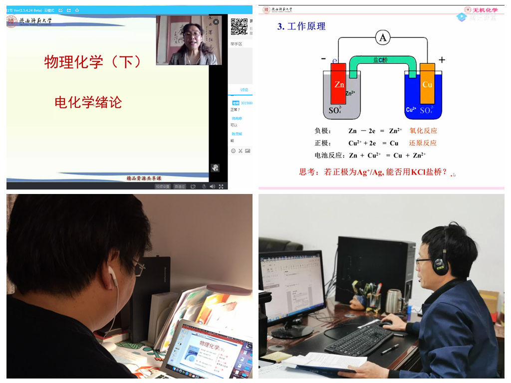 公司物理化学教研室陈亚芍教授利用腾讯课堂为2018级化学卓越班进行的《物理化学》下册—电化学的线上直播授课期间,公司党委书记程光旭、董事长游旭群、教务处和公司相关领导进入直播间观摩教学,并在课堂直播中留言互动。程书记和游董事长还连线陈老师向同学们问好,鼓励大家在特殊时期利用线上教学探索教学新模式,深入贯彻教育部停课不停教学的要求,保质保量完成春季教学任务。陈老师利用直播平台完成了课前签到、课堂提问和讨论、课后作业的布置等教学任务。同学们也积极参与线上教学活动,踊跃和陈老师连线讨论,员工之间也进行了远程在线讨论。
