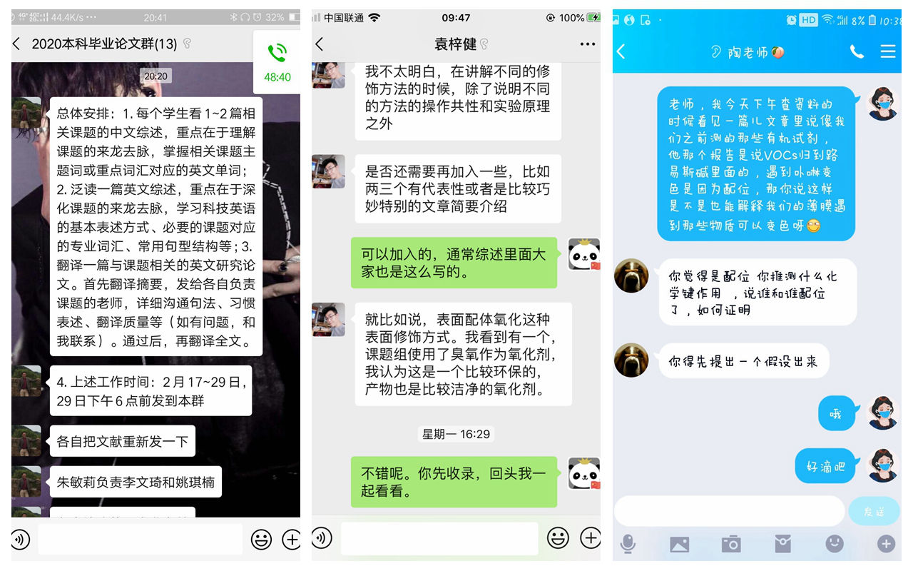 应用化学教研室积极响应教育部“停课不停学”的号召,成立线上课程筹备组,集体备课,录制视频;课前提前布置预习和学习任务;课堂在线讲解,及时测试答疑;此外,还关注员工的思想健康问题,引导员工思考如何从疫情和灾难中成长起来将自己锤炼成员工满意的人民教师。