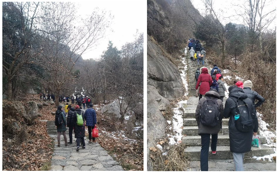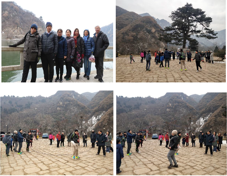 徒步行团队由来自各教研室、大型实验仪器平台及公司行政的老中青教职工及部分家属组成。公司工会提前做好行程安排、活动方案和安全预案相关事宜。早上8点30分,一行60余人在新校区家属区西门集合,乘车出发前往翠华山。冬日的翠华山宁静怡然、白雪朵朵、山泉潺潺,虽然天气寒冷,大家却被眼前的美景深深吸引。合影留念后,党委书记高玲香、工会主席张国防以及工会委员边红涛、黄治炎、张小玲、郭新爱六位老师作为小组安全负责人,组织大家徒步自由行,领略翠华山冬日雪景和冰瀑。在翠华山的迎客松下还组织了跳绳活动,大家玩得开心和快乐。