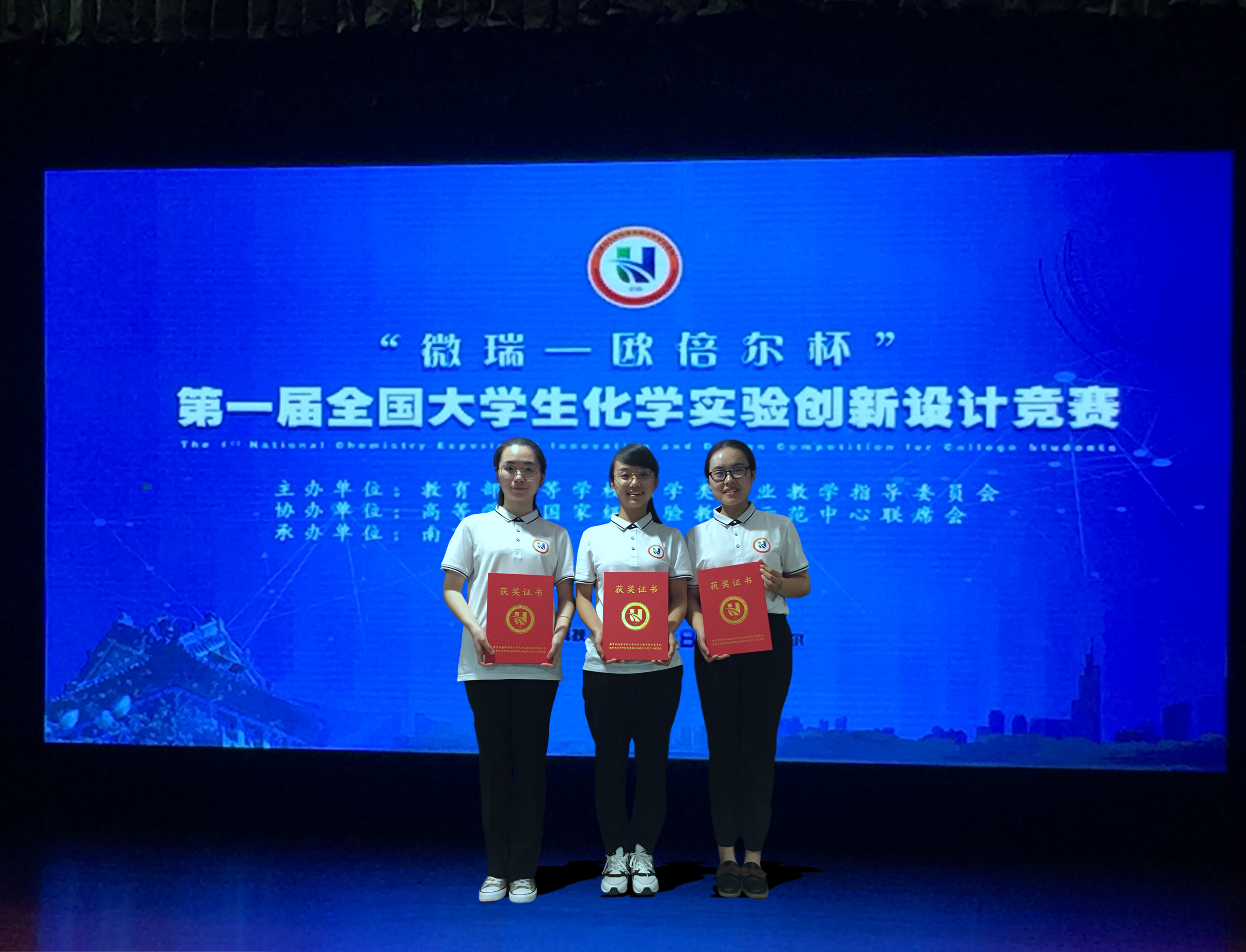 公司组织了以国家级化学实验教学示范中心杨文玉副主任和刘成辉副经理为领队、2016级三名本科生宋华昳、叶思阳和曹雨雨、以及指导教师魏灵灵副教授和焦桓教授等7人团队参加了本次竞赛。参赛团队先期所提供的参赛论文和视频材料均得到了评审专家的高度好评,再经过两轮现场答辩和专家提问,公司参赛团队最终凭借优异表现从88支参赛队伍中脱颖而出,荣获一等奖。