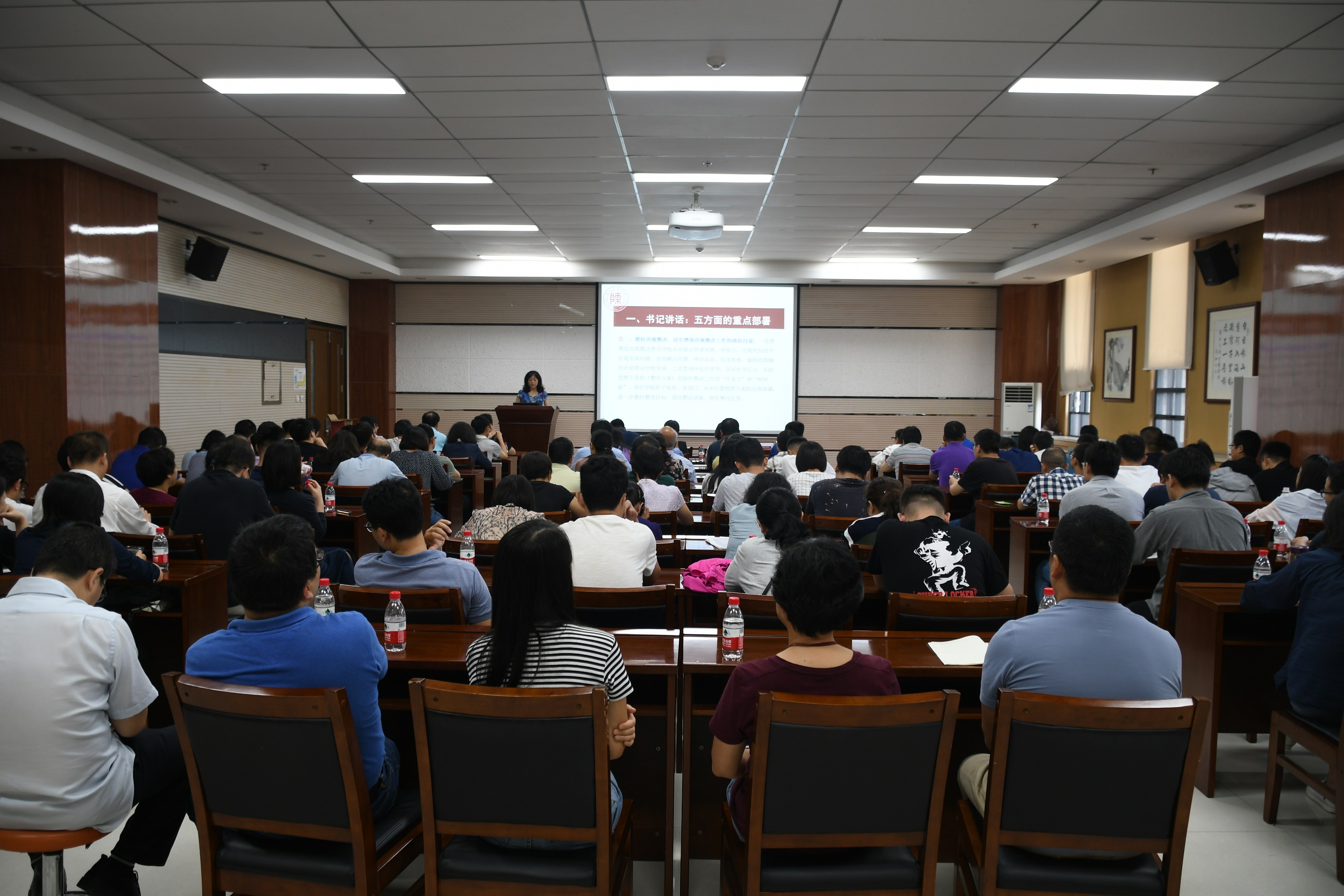 高玲香书记传达了教育部巡视组巡视公司整改工作相关情况,并详细解读了公司新学期工作部署会上程光旭书记、游旭群董事长讲话精神。她要求全院教职工认真学习领会并准确把握公司会议精神,自觉提升政治认识和政治自觉,围绕“师德师风”“员工培养”“教书育人”三个方面做好“不忘初心,牢记使命”主题教育工作。在新学期工作中,合理安排思想政治学习时间,抓好校园安全稳定工作,加强“课程思政”建设,全方位保障毕业生就业工作。