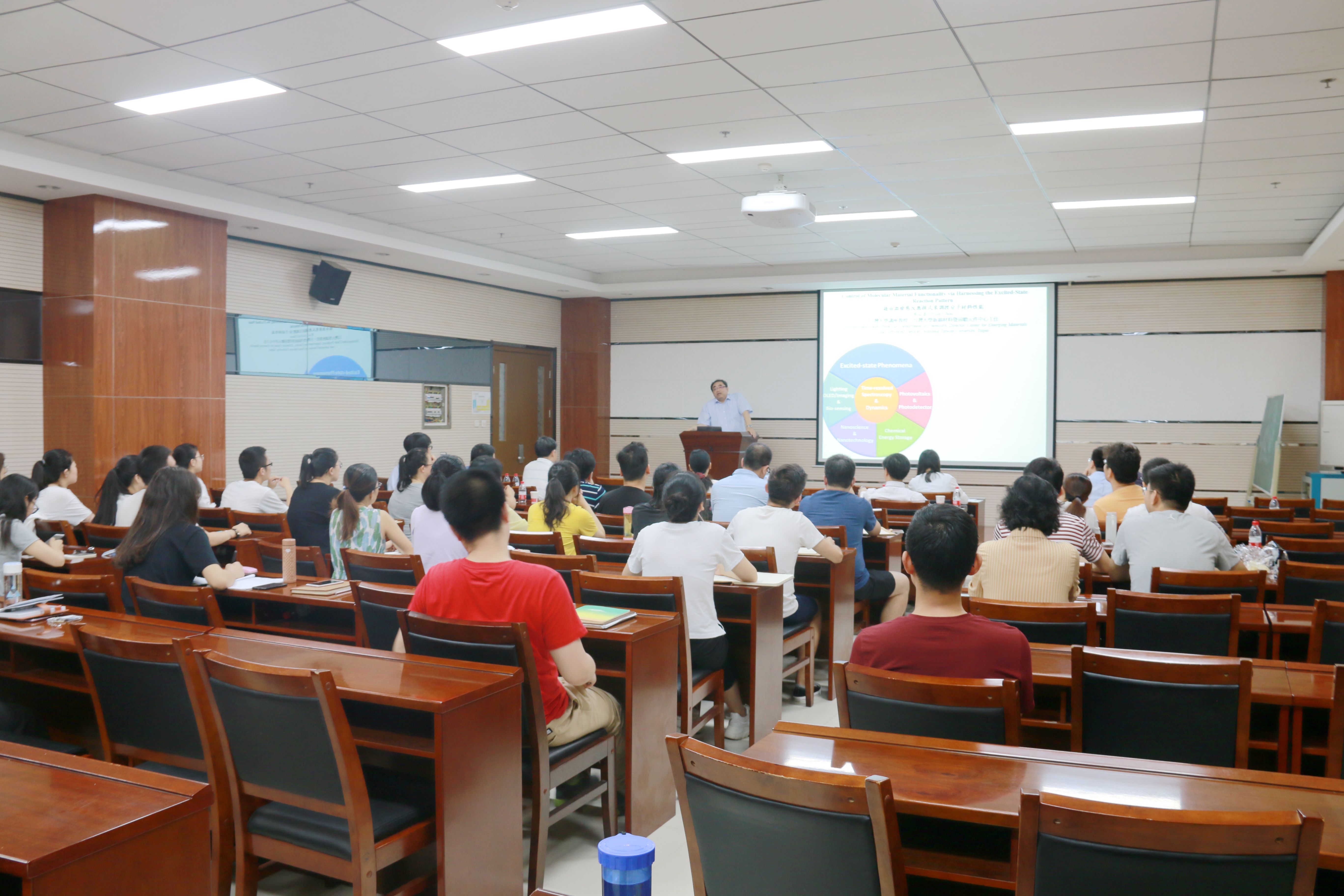 6月20日上午,台湾大学新颖材料暨前瞻元件中心主任,台湾大学杰出教授周必泰应邀访问公司,在致知楼1668报告厅为公司师生作了题为“借由激发态反应模式来调控分子材料性能”的报告。公司房喻教授、丁立平教授、边红涛教授、尹世伟教授、张成孝教授、刘静副教授、彭军霞副教授、李楠副教授、材料公司胡鉴勇教授及相关专业研究生和本科生聆听报告,报告由房喻教授主持。
