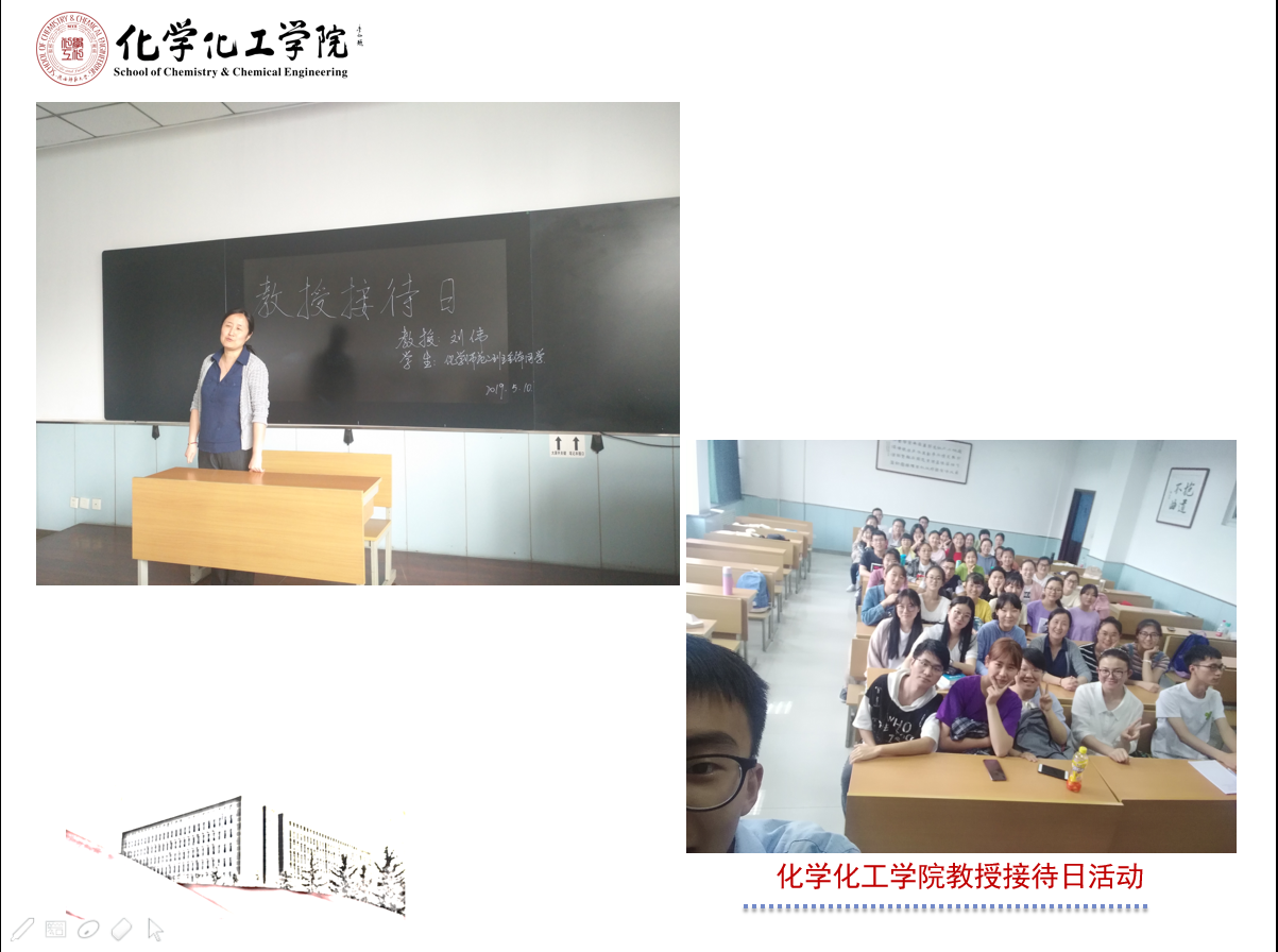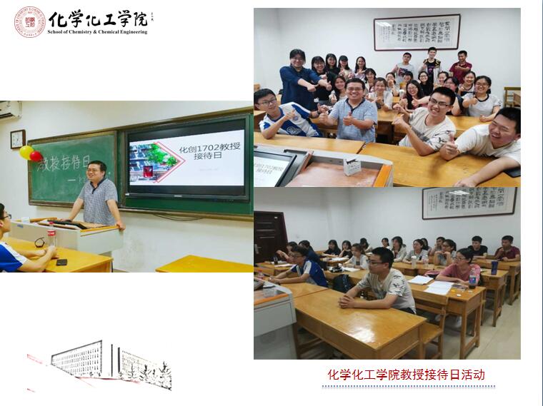 5月12日,化学类1802全体同学在教学八楼8407教室举办教授接待日活动。本次活动以“Chemistry and Future”为主题,邀请了翟全国教授出席活动。翟教授向同学们讲述了他的老员工活并给同学们提出了一些建议。作为师大毕业生,他当年在师大的生活与同学们完全不同:在固定教室上课,七点早点名,然后早操、早读、上课,单调的老员工活使他有遗憾也有收获。翟教授否定了“上大学就要放松”的观念,向同学们强调了学习的重要性,并鼓励有能力的同学勇敢地走出去,不要墨守成规,要抓住机会让自己走的更高更远。翟教授向同学们分享了一些同学们可以从事的职业,并讲到在学习上“不要把目标树立的过分长远,应该把目标细化”,强调了合理利用碎片化时间的重要性,使同学们受益匪浅。
