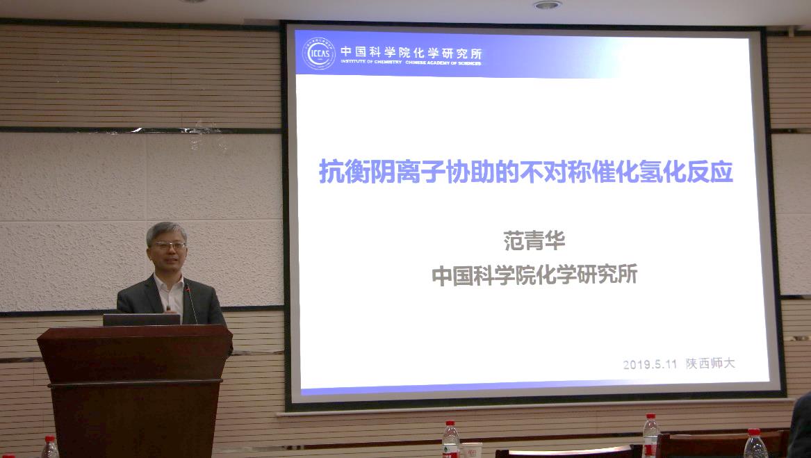 中科院化学所研究员范青华教授作题为“抗衡阴离子协助的不对称催化氢化反应”的报告。他从手性的定义和手性物质的重要性引出不对称催化的基本科学问题入手,从不同角度阐释了不对称催化目前的进展与挑战。随后,他还系统地介绍了他的课题组近几年在阴离子效应下,从“单杂环体系”到“多杂环体系”以及从“单一反应”到“多步串联反应”的不对称氢化方面取得的最新研究进展。范青华教授课题组在阴离子导向的催化氢化上,实现了十几类含氮杂环和亚胺的高效氢化反应,这一研究成果得到了国内外同行的广泛肯定及认可,并应邀收入世界上最具权威性的有机化学工具书。