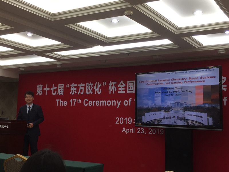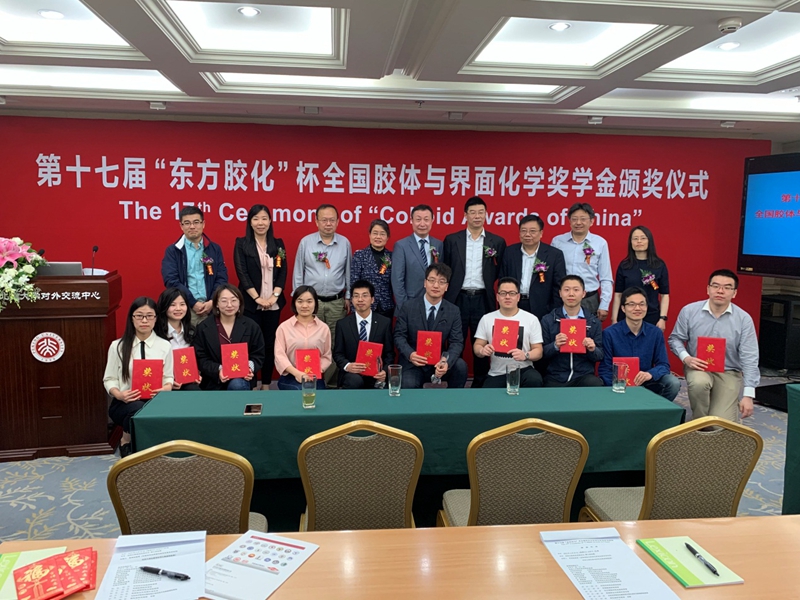 4月23日,第十七届“东方胶化”杯全国胶体与界面化学奖学金颁奖仪式在北京大学英杰交流中心举行,公司光子鼻与分子材料研究团队房喻教授课题组的博士研究生常兴茂和祁彦宇分别获得了“东方胶化杯”全国胶体与界面化学研究生优秀成果一等奖和三等奖,刘小燕副研究员受邀出席了颁奖典礼。颁奖典礼上,刘小燕作为受邀嘉宾对获奖员工致颁奖寄语,并做了精彩的邀请报告,介绍了课题组近期科研成果;常兴茂同学汇报了博士阶段的科研成果。与会嘉宾对光子鼻与分子材料研究团队所取得的研究成果给予高度肯定。