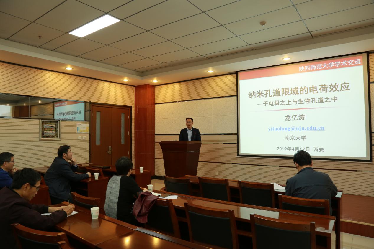 2019年4月17日上午,南京大学龙亿涛教授应邀访问公司,在致知楼1668报告厅为公司师生作了题为“纳米孔道限域的电荷效应—于电极之上与生物孔道之中”的精彩报告。公司张成孝教授、李保新教授、党福全教授、吕家根教授、高强教授、杜建修教授、金燕教授、郭志慧教授、唐艳丽教授、漆红兰教授、刘成辉教授、任伟副研究员、刘晓玲博士等教师及相关专业研究生、本科生聆听报告。报告会由张成孝教授主持。