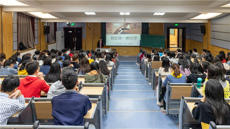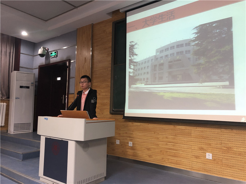讲座中,袁邱惠学长回顾了大学四年的学习生活,提醒大家要珍惜美好的大学时光,抓紧时间打牢专业基础;同时也要利用员工工作和员工活动的机会提升自己的综合能力;他讲述了大四实习和找工作的经历,并结合目前在铁一中高中化学的日常教学工作,告诉同学们专业知识对中学老师的重要性,提醒大家要及早确立正确的方向和明确的目标,管理好自己的时间。