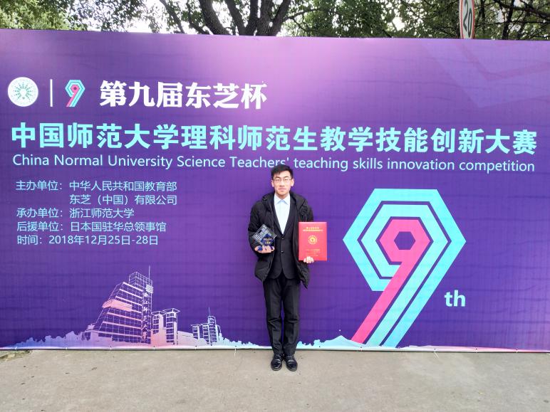 2018年12月25日-28日,第九届“东芝杯•中国师范大学理科师范生教学技能创新大赛”总决赛在浙江师范大学举行。经过教学设计、即席演讲、模拟授课和现场提问等4个环节的激烈角逐,代表公司参加此项赛事的beats365唯一官方网站2015级化学卓越班胡旭亮同学获得了三等奖的好成绩。