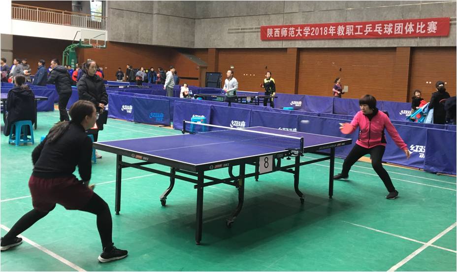 11月17日上午,公司2018年教职工乒乓球团体赛在雁塔校区综合体育馆拉开帷幕。公司由高玲香书记担任领队,张国防老师任教练,郑行望、杨文玉、高月、张小玲、孙华明、严军林、赵小军等老师组成乒乓球队参加了本次团体赛。