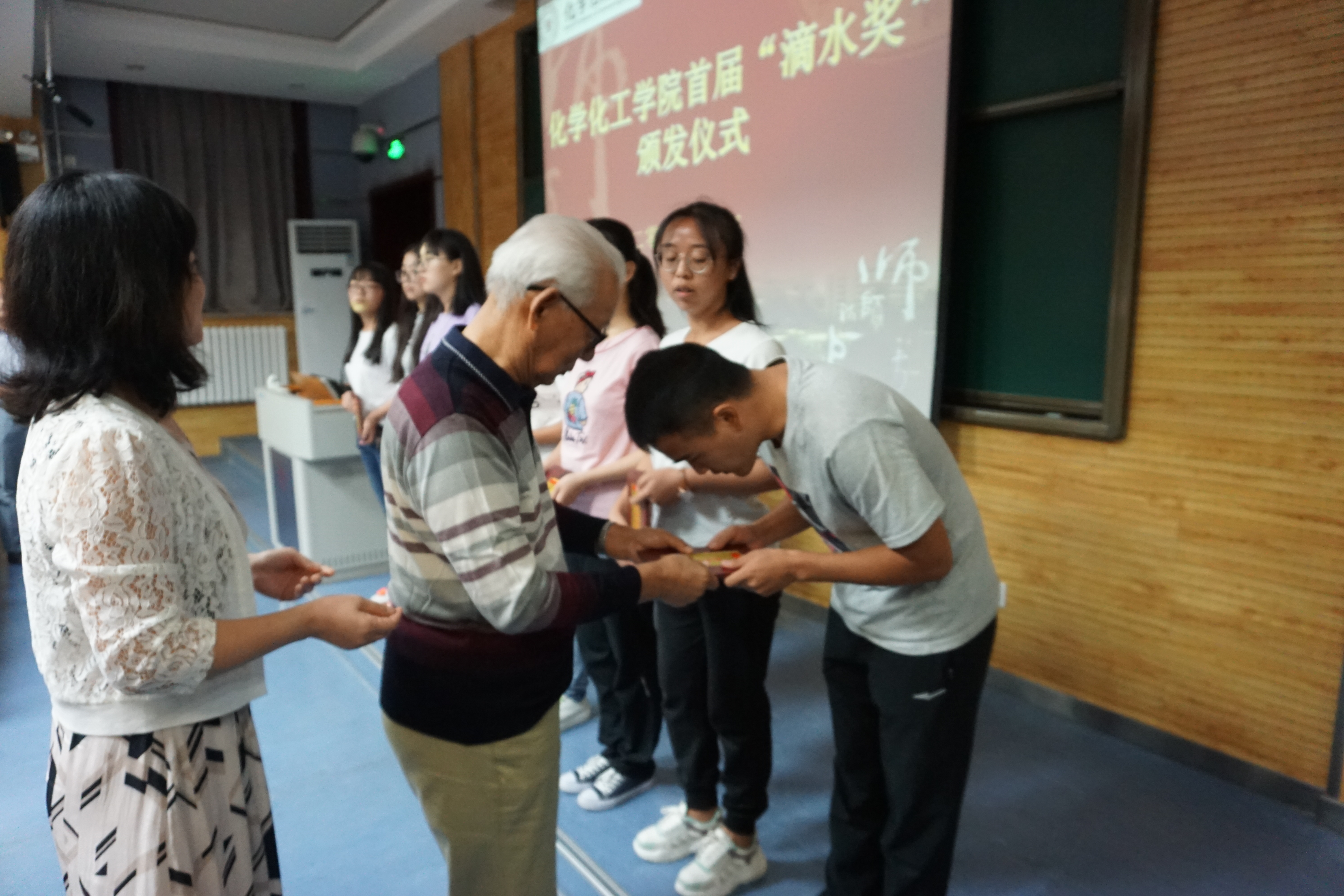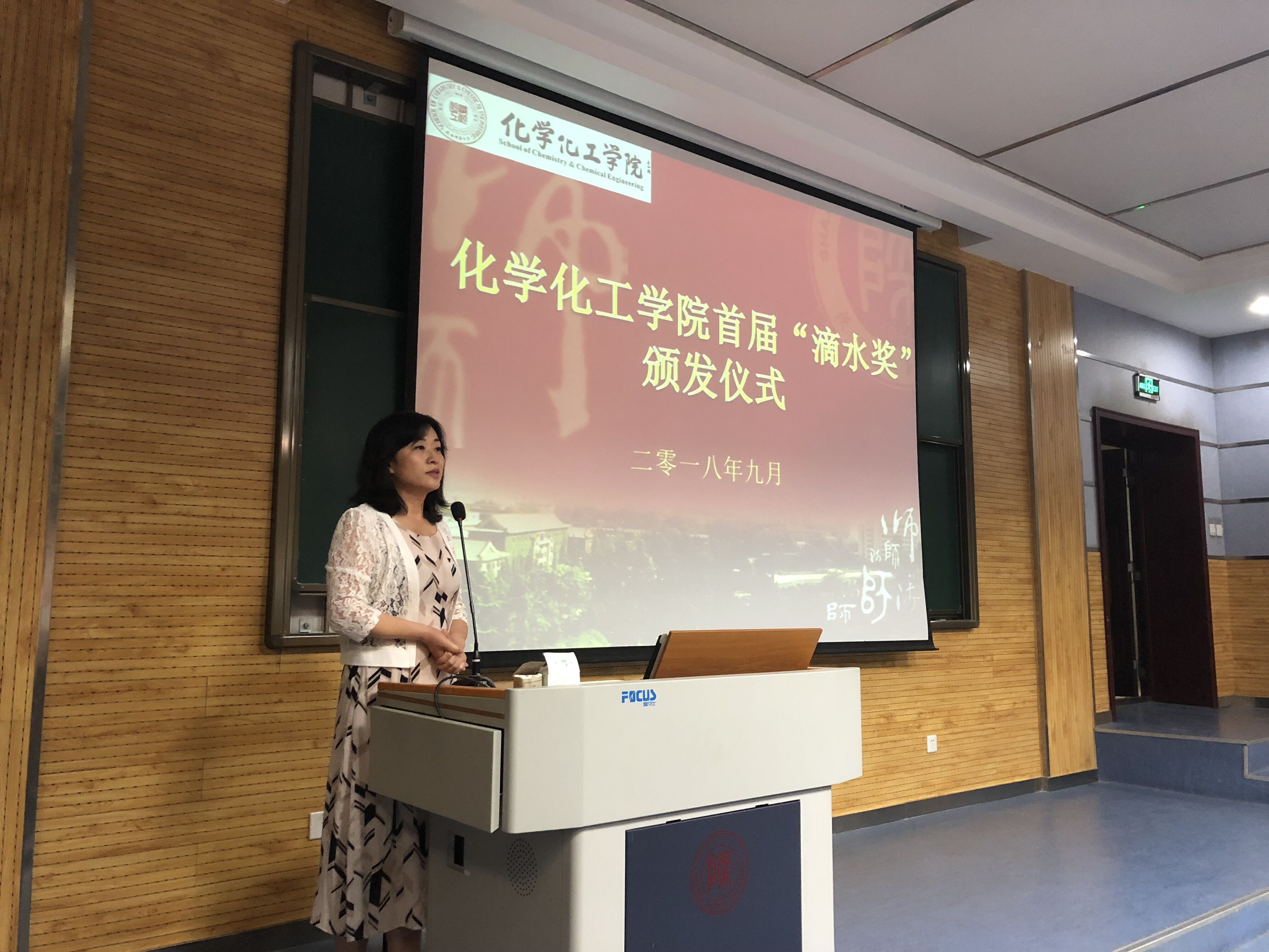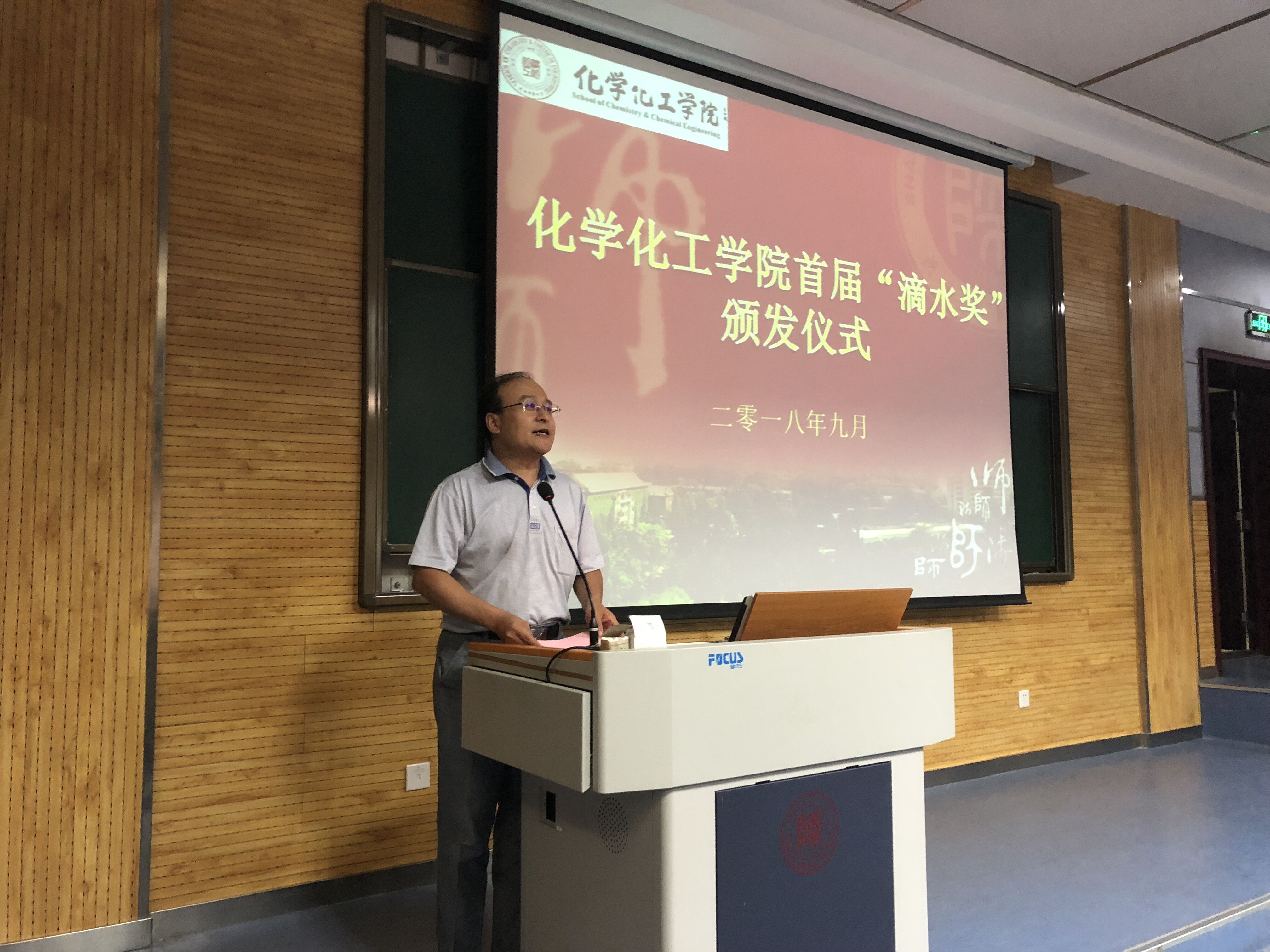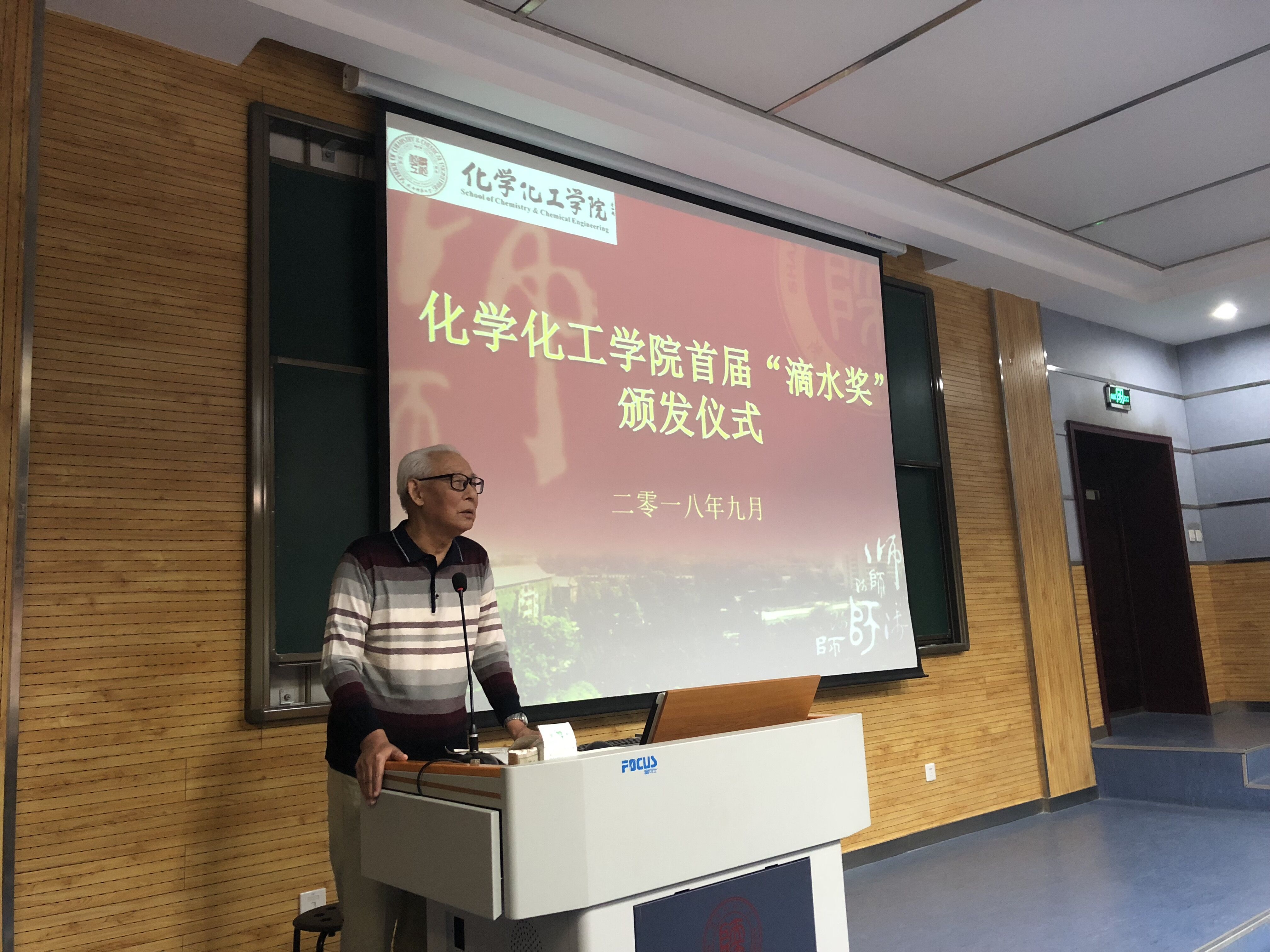 2018年9月9日下午,公司首届“滴水”奖学金颁发仪式在雁塔校区教学五楼5104教室举行。“滴水”奖学金捐资发起人、公司退休教师薛封和老师,公司党委书记高玲香、副书记王晓、分析化学教研室主任漆红兰、教工分析化学党支部书记刘伟、2017级员工辅导员龙卓华及年级全体员工参加了颁奖仪式。颁奖仪式由公司副书记王晓主持。