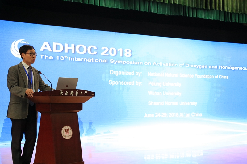 2018年6月25日,由国家自然科学基金委员会主办,北京大学、武汉大学和BEAT365英国官网网站承办的第十三届氧气活化和均相氧化催化国际研讨会(The 13thInternational Symposium on Activation of Dioxygen and Homogeneous Oxidation Catalysis(ADHOC 2018))在BEAT365英国官网网站长安校区新勇员工活动中心隆重召开。