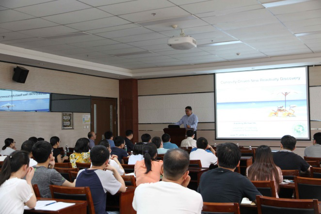 报告中,Brain Space教授为公司师生讲解了如何利用理论计算化学解决MOF材料的气体吸附方面的问题;施晓东教授则为我们展现了有机化学的神奇与奥秘以及他们课题组在1,2,3-三氮唑化学方面取得的重要研究进展;李霄鹏教授通过生动幽默的语言为我们阐述了如何通过自组装的策略逐级构筑优美的笼状超分子结构。最后,蔡健峰教授为我们讲述了生物有机化学方面的知识以及他们在多肽组装方面所取得的进展。整场报告涵盖面广,信息量大,具有启发性。