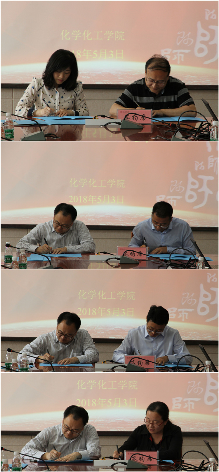 在中心组学习扩大会上,为认真贯彻落实党风廉政建设责任制的工作要求,强化领导班子主体责任和“一岗双责”意识,促进党风廉政建设职责层层落实,党董事长与党委书记高玲香、经理薛东,高玲香、薛东分别与副书记、各副经理以及应用表面与胶体化学教育部重点实验室副主任签订了2018年党风廉政建设责任书。