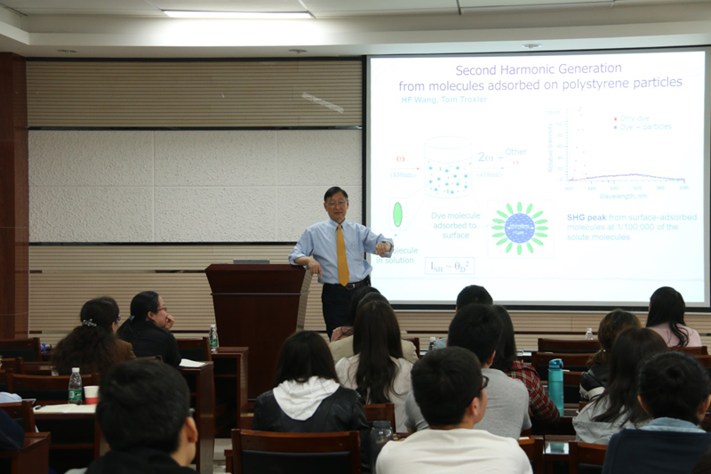 4月18日上午,美国天普大学副董事长戴海龙教授应邀访问公司,并在致知楼1668报告厅为公司师生带来题为“Second Harmonic Light Scattering from Colloidal Objects”的精彩报告。报告由房喻教授主持,公司陈亚芍、丁立平、张颖、杨鹏、边红涛、刘静,刘太宏、彭军霞、彭浩南、王红艳等老师以及和相关专业博士生、硕士生和本科生聆听了本次报告。