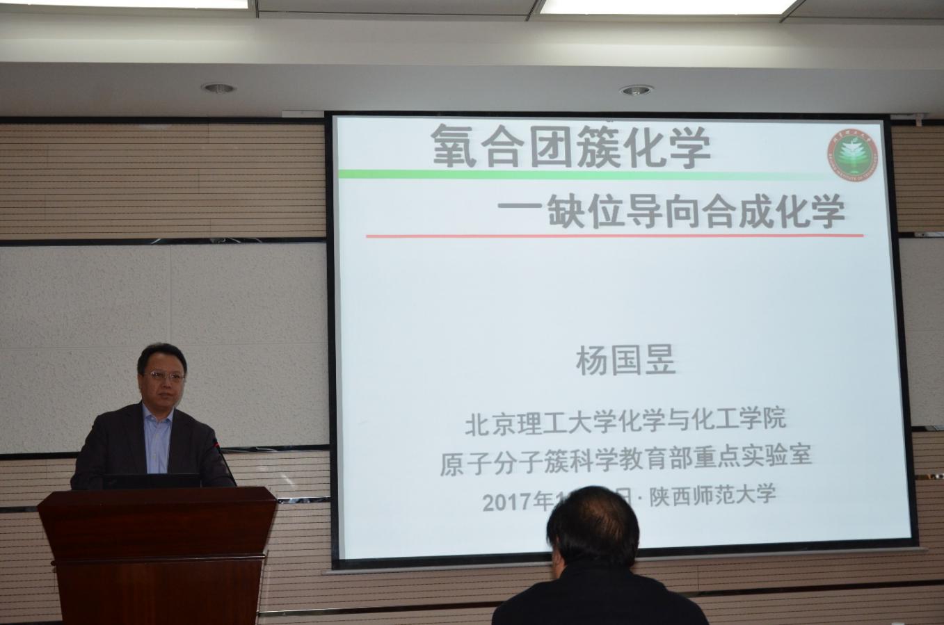 12月3日,2017陕西无机化学研讨会在长安校区致知楼召开。论坛开幕式上,化学会理事长、西北大学副董事长王尧宇教授和beats365唯一官方网站书记高玲香教授为此次会议致辞。出席此次会议的专家学者包括西安工程大学副董事长樊增禄教授,大连理工大学段春迎教授,北京理工大学杨国昱教授,西安交通大学延卫教授,BEAT365英国官网网站副董事长高子伟教授、白俊峰教授、曹睿教授、beats365唯一官方网站副经理焦桓教授和无机化学学科的全体教师。来自北京理工大学、西安交通大学、大连理工大学、BEAT365英国官网网站、西北大学、西安工程大学等高校的专家学者、博士生、硕士生共计50多人参加了此次研讨会。上午的学术研讨会上,段春迎、杨国昱、曹睿和延卫四位教授,分别以金属有机限域体系的可控构筑与超分子催化、缺位导向合成化学、能源相关小分子活化及一维无机纳米材料的制备及性能为题,做了精彩的学术报告。
