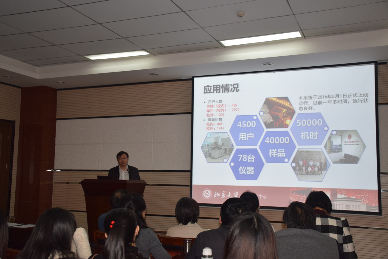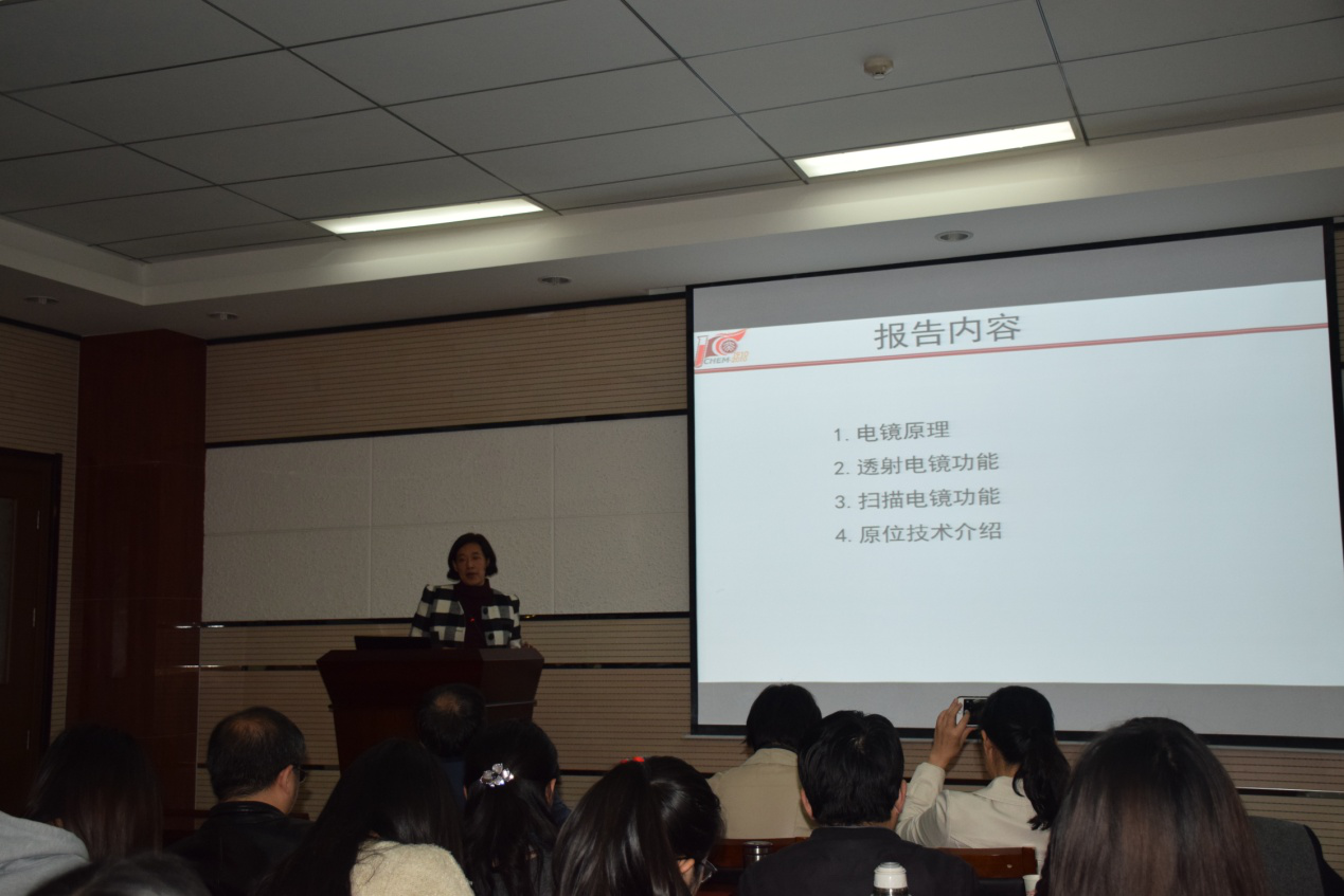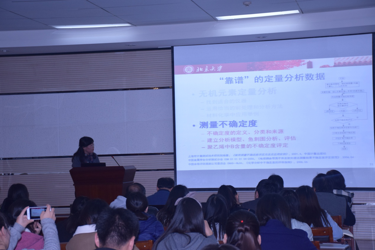 报告中,谢景林教授介绍了XPS的原理、功能、对科学研究的贡献、应用及(准)原位分析,并对光电子能谱技术的完善与发展提出了自己的见解。扶晖博士在报告中介绍了核磁共振原理、液体核磁共振与固体核磁共振及其应用。张莉博士以有趣的题目将大家的注意力引入元素分析的报告中,通过无机元素定量分析、测量不准确度两大部分向大家讲解了如何得到准确度高的数据。鞠晶博士则向大家介绍了扫描电镜的相关知识。周江教授在报告中展示了北京大学分析测试中心的信息化建设,并列举了一系列质谱在最新科研成果中的应用实例。整场报告深入浅出,公司师生授予匪浅。