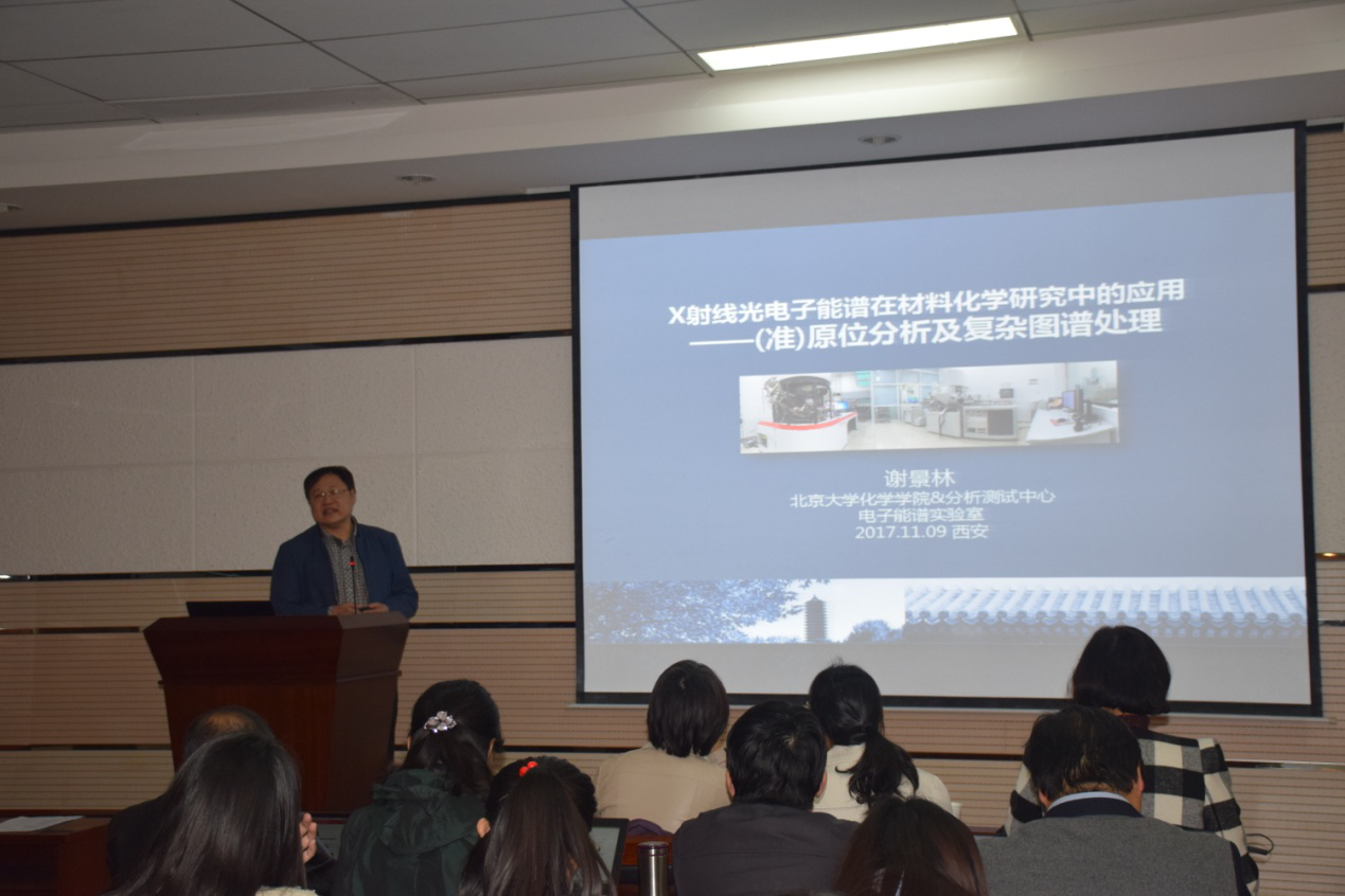 2017年11月10日上午,北京大学谢景林教授、周江教授、扶晖博士、张莉博士、鞠晶博士应邀访问公司,在致知楼1668报告厅分别为公司师生带来了题为“XPS在化学研究中的应用”、“固体核磁应用简介”、“如何得到‘靠谱’的实验数据”、“电镜技术在材料科学中的应用”、“北京大学分析测试中心信息化建设及质谱应用案例”的学术报告。公司实验中心办公室主任杨文玉老师、专业实验室严向阳老师、大型仪器管理平台何攀、刘凯强、左萍等老师及部分研究生聆听报告。报告会由焦桓教授主持。