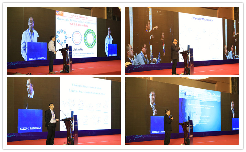 2017年11月4日,来自新加坡国立大学吴继善教授、韩国Chonnam National University的Sunwoo Lee教授、北京大学余志祥教授、泰国Chulabhorn Graduate Institute的Poonsakdi Ploypradith教授、台湾国立中山大学的吴明忠教授从有机方法学、环加成反应、全合成等方面将有机化学的不同领域的最新研究成果呈现给与会代表,并和与会代表进行了深入的讨论。公司beats365唯一官方网站的王涛博士作了一分钟报告和墙报展示。