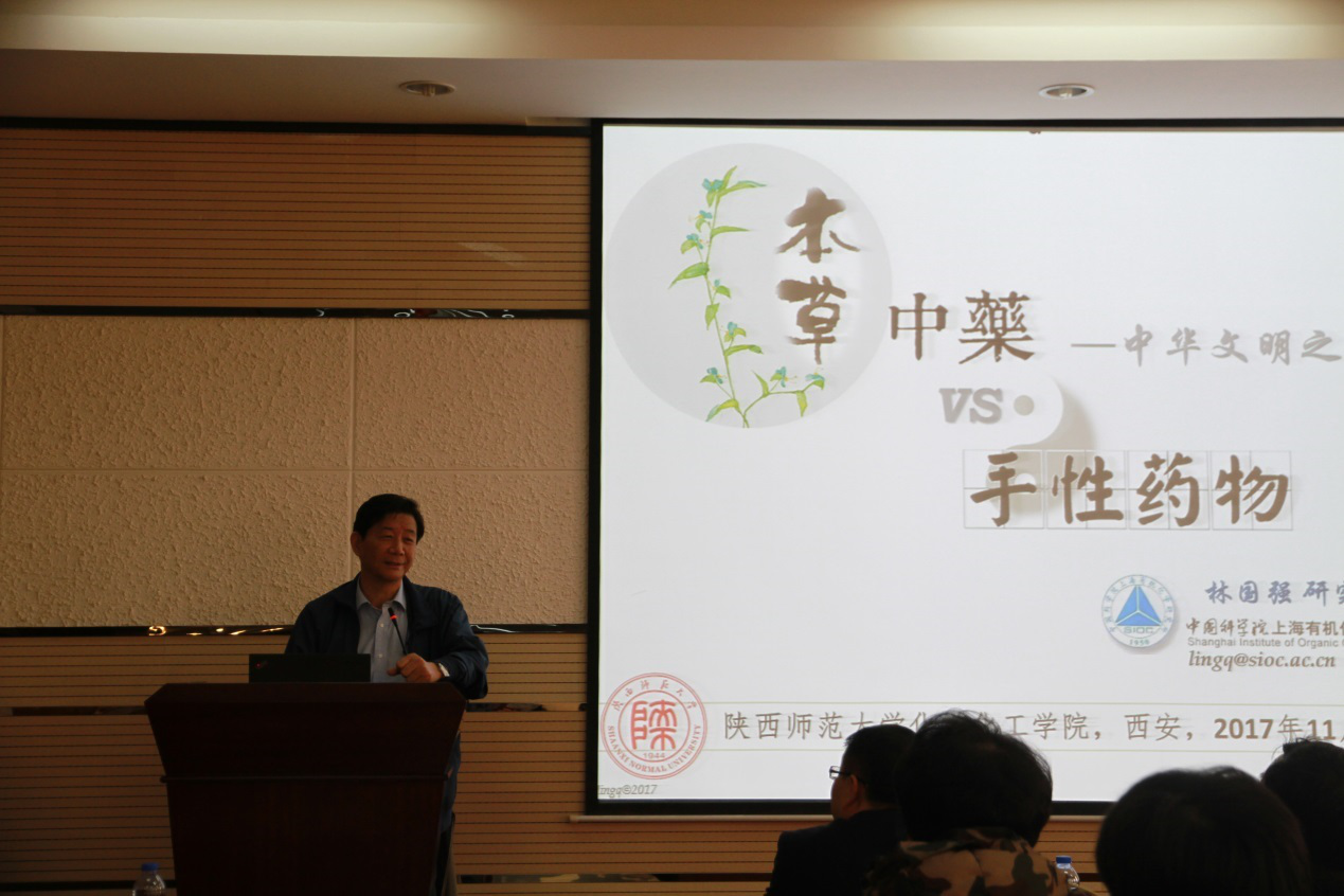 2017年10月26日上午, 中国科公司院士林国强先生应公司经理薛东教授邀请访问公司,在致知楼1668报告厅为公司师生作了题为“中药本草与手性药物”的精彩报告。薛东教授 、李保新教授、魏俊发教授、李超群教授等出席了讲座,公司约130位研究生聆听报告。报告会由薛东主持。