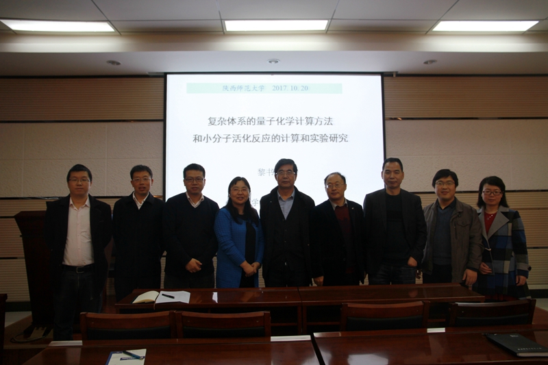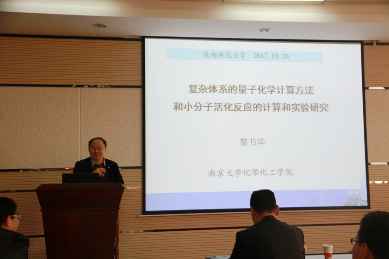 2017年10月20日下午,南京大学黎书华教授应邀访问公司,在致知楼1668报告厅为公司师生作了题为“复杂体系的量子化学计算方法和小分子活化反应的计算和实验研究”的精彩报告。白俊峰教授、王文亮教授、张聪杰教授、尹世伟教授、杨鹏教授、刘峰毅教授、王渭娜等教师及相关专业研究生、本科生聆听了本次报告。报告会由白俊峰教授主持。