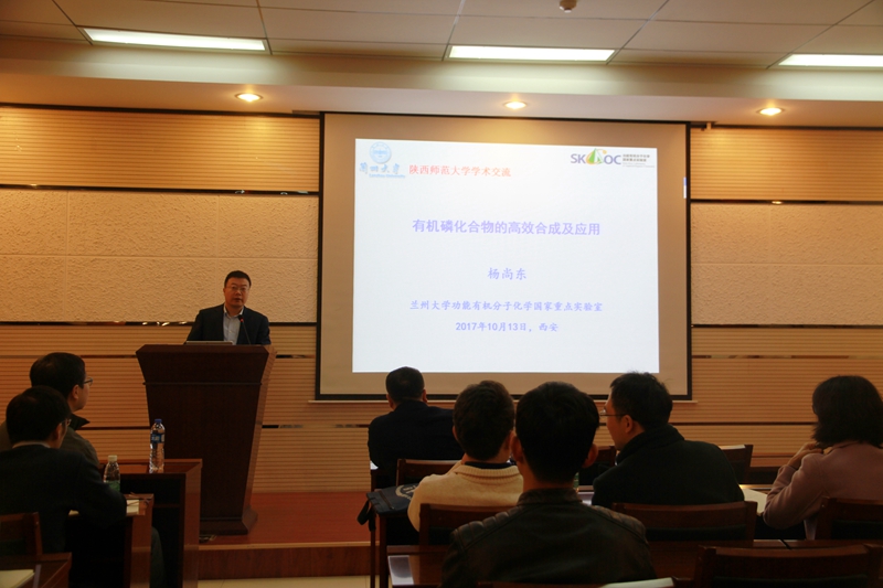 2017年10月13日上午,兰州大学杨尚东教授应公司经理薛东教授邀请访问公司,在致知楼1668报告厅为公司师生作了题为“有机磷化合物的高效合成及应用”的精彩报告。薛东教授、石先莹教授、王超教授、李超群教授、黄治炎副教授、李高强副教授、杨明瑜副教授、赵玉明副教授、王涛博士、雷海涛博士、李刚博士等教师及相关专业研究生、本科生聆听报告。报告会由薛东教授主持。