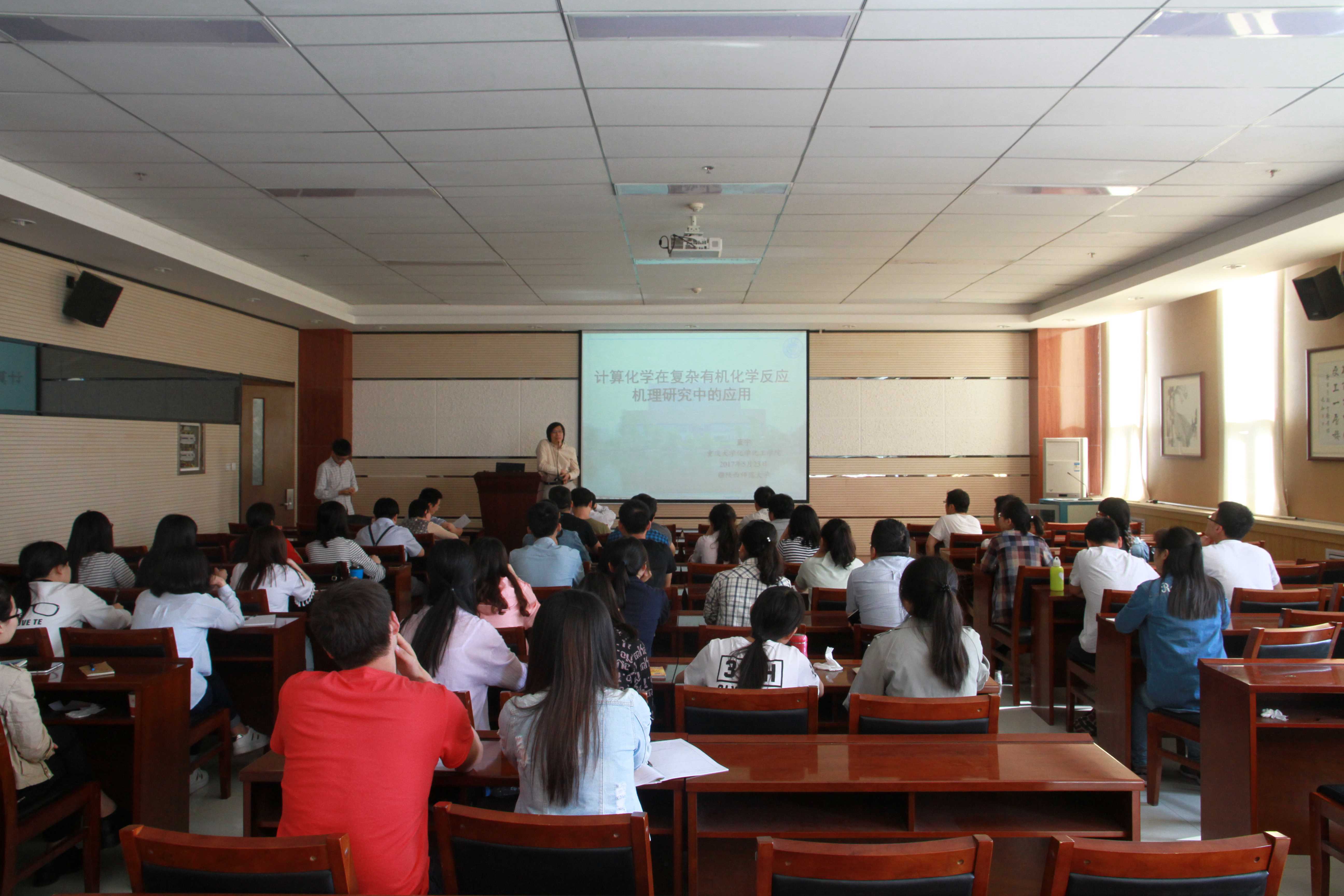 2017年5月23日下午,重庆大学beats365唯一官方网站蓝宇教授受邀在公司致知楼1668报告厅为公司师生作了一场题为《计算化学在复杂有机化学反应机理研究中的应用》的精彩报告。报告会由曹睿教授主持。公司薛东经理、张伟副教授、郑浩铨副教授、刘峰毅教授、黄治炎副教授、孙华明老师等教师及相关专业研究生、本科生聆听了报告。