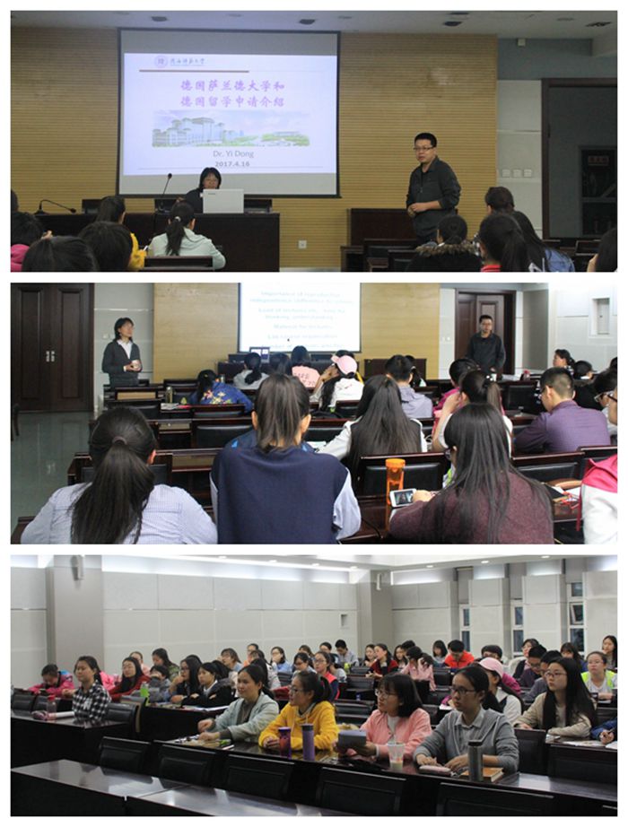 尹世伟教授主持了本次报告会,尹教授简单介绍了董奕教授的教学和科研情况。接着,董教授分两部分讲述了报告内容。首先,她简要介绍了萨兰德大学的地理位置、公司历史、团队力量、硬件设备、机构设置等情况,让同学们对萨兰德大学有了基本的了解。同时,董教授对同学们关心的留学问题也作了详细地说明。其次,董教授介绍了德国大学的课程设计情况,介绍了德国大学本科及硕士的课程概况,以及课程的学分设置,特别说明了德国课程成绩通常分为口试、考试、报告三部分。对比中国的教育,她认为德国的教育在重视基础知识的同时,注重研究性学习以及员工对知识的运用能力培养。报告之后,董教授就员工感兴趣的问题做了解释和说明,并与同学们互动交流。活动最后,尹教授表达了与德国萨兰德大学进一步交流活动的殷切希望。